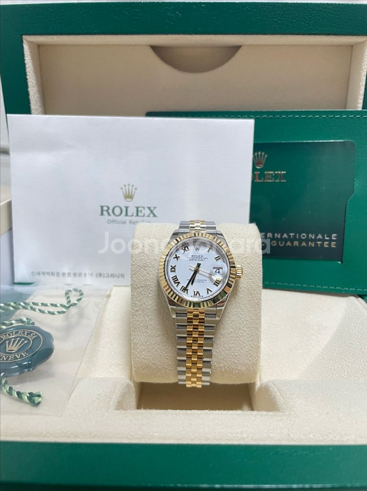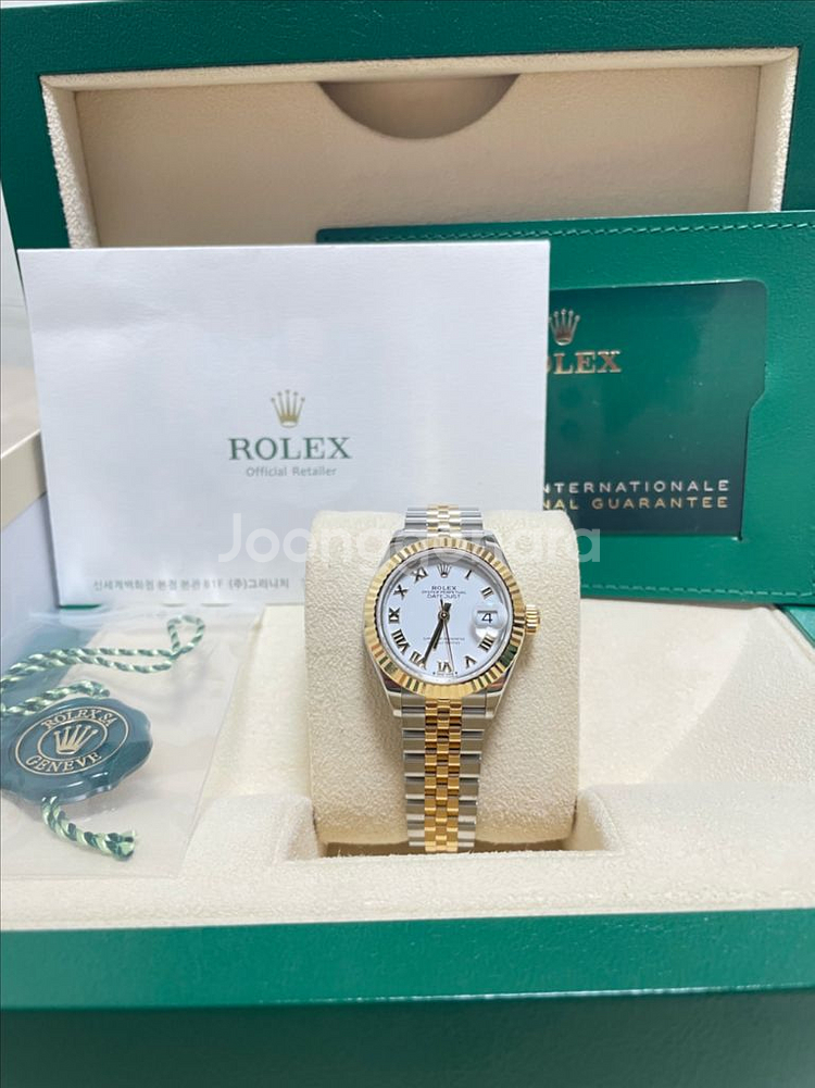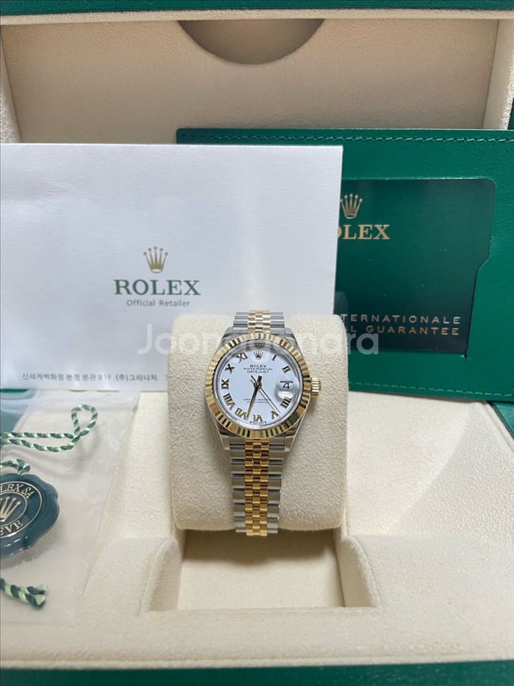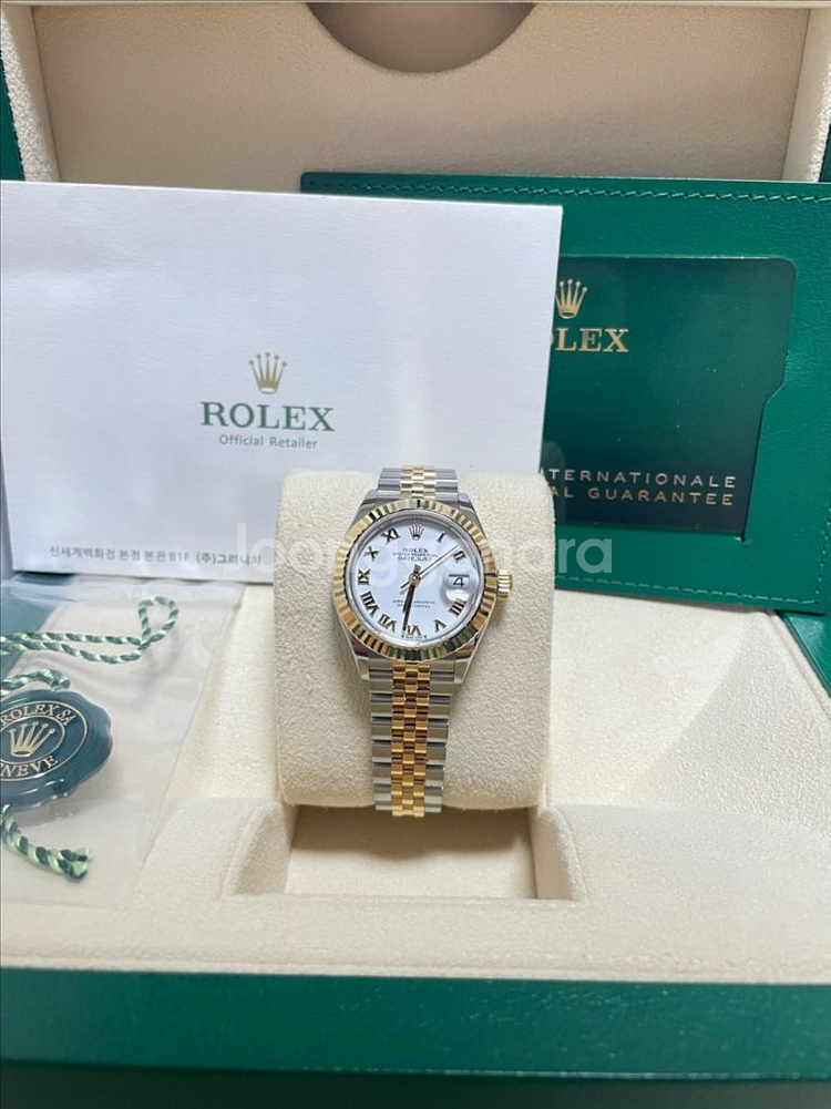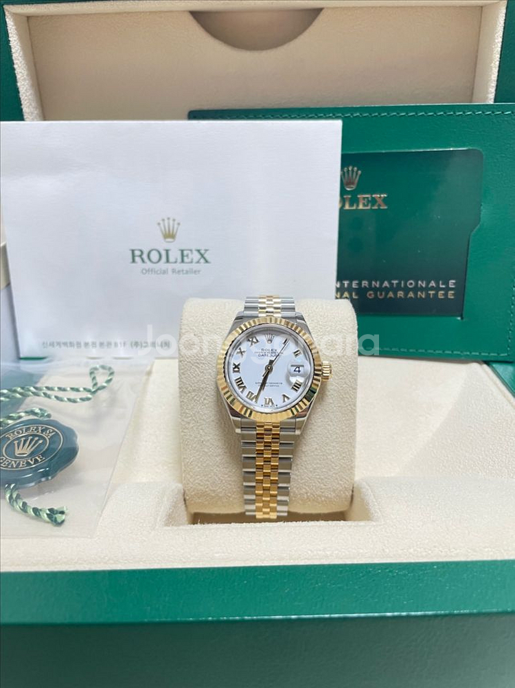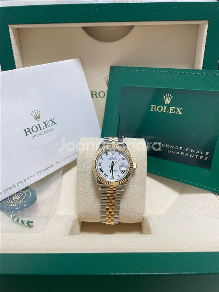 0. 모델번호 : 279173 1. 모델명 : 로렉스 신형 데이저스트 28 흰판로만 콤비 2. 스템핑일자 : 2023-08(년-월) 3. 리테일가 : (해당연도 백화점가) 4. 판매가격 : 1610 (ex. 12000)(만원단위 최종가격) 5. 구성품 : 백화점에서 받은 그대로 풀세트 국내 6. 시계상태 : 10점 -삼삼칠일-4O74 연락부탁드립니다