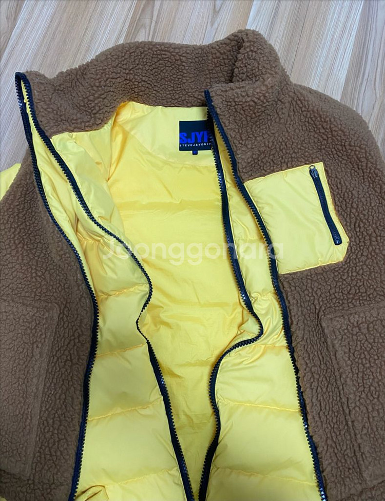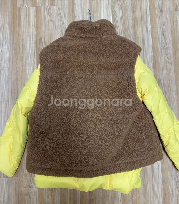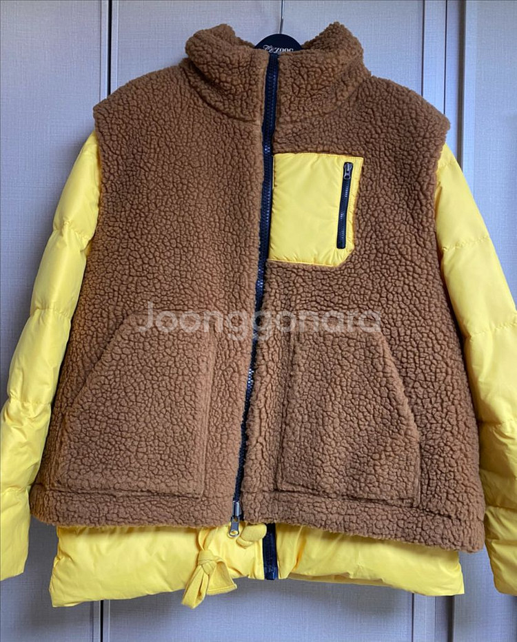 SJYP 패딩 예쁜 노랑 + 브라운조끼 붙어있는 제품 사이즈가 크게 나와 안에 넉넉히 입고도 55-66 가능