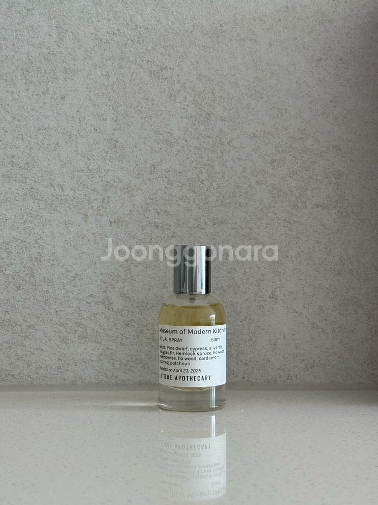 뮤지엄 오브 모던 키친 x 수토메 아포테케리 리추얼 스프레이 50ml / 정가 73,000원 요정재형 유튜브 보고 올 초에 주문해서 몇 달 간 기다렸다가 받은 제품입니다 (블렌딩 날짜 25년 4월) 원래 친환경으로 패키지 없는 제품이고, 한두번 뿌려본게 전부인 거의 새 상품입니다! 평일 역삼역 직거래 가능하고, 택배 시 택비 별도입니다! (반값택배 2000, 일반택배 3500)