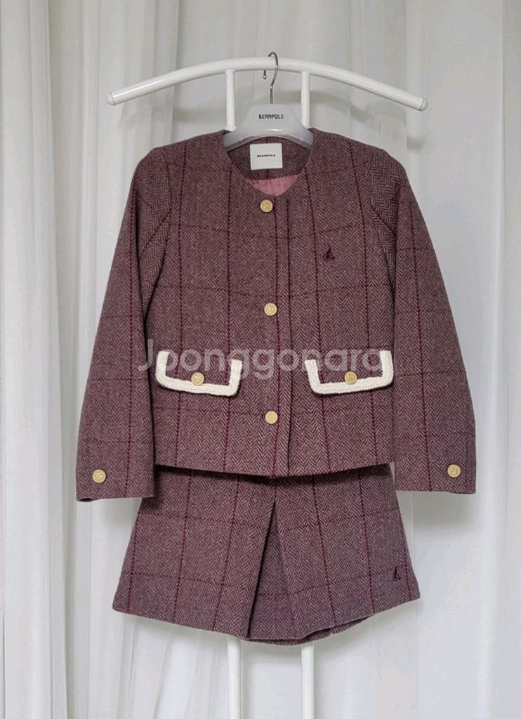 2시간 정도 행사에서 1회 착용 현재도 할인 구매가 50만원이 넘는 세트예요 자주색 가까운 딥핑크에 그레이 한 방울 섞인 헤링본 원단이라 실물 완전 완전 고급집니다👍 블라우스는 신축성 좋고~올당김이 몇군데 있지만 가까이서 꼼꼼히 훑어봐야 보이는 정도라서 입는데 문제 없습니다 130~145사이즈 입는 아이까지 예쁘게 입을것 같아요 3피스 모두 드라이클리닝해서 보관했어요