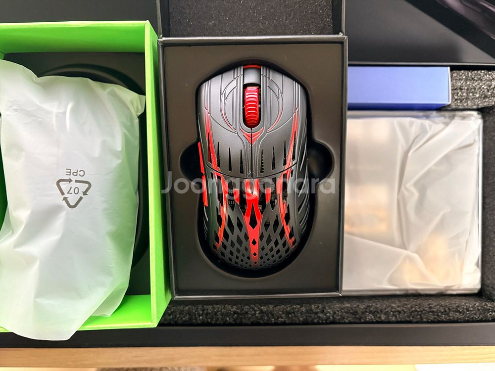 - 구매일 : 6월 21일 (영수증상 / 2차구매) - 구성품 : 마우스, 리시버, 케이블, 여분 그립테이프, 여분 피트, 조정 드라이버 등 사진은 원하시면 찍어서 보내드립니다.