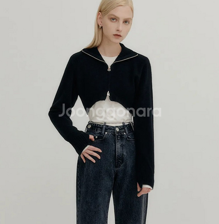 yuse 유즈 RACCOON TWO WAY ZIP-UP KNIT TOP - BLACK 입니다. 상세 소재랑 사이즈는 이미지첨부했습니다. 사놓고 한번 입어보고 보관만 했습니다~