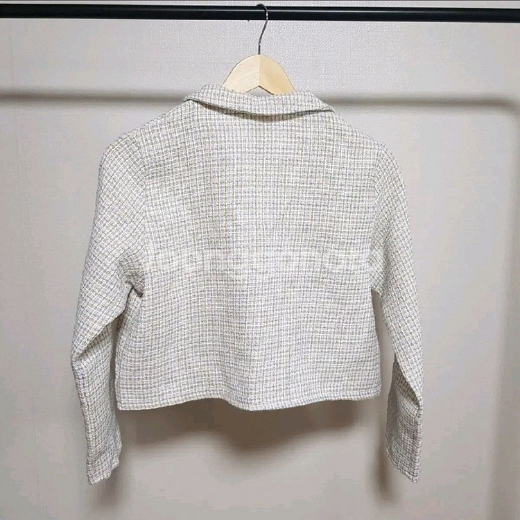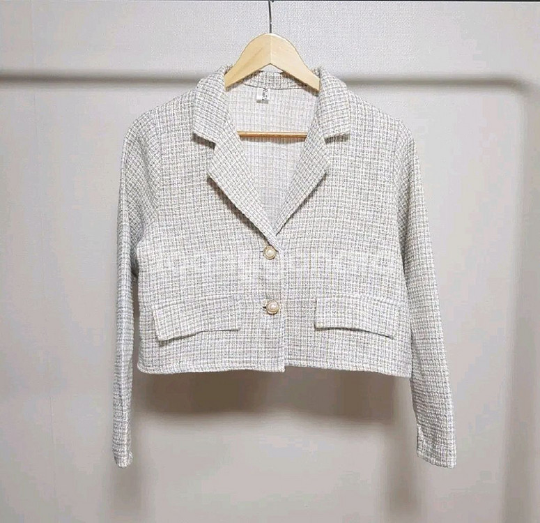 트위드 크롭 자켓 판매해요! 색상은 아이보리입니다. - 봄 가을에 입기 좋아요 - 진주 버튼이 포인트 - 짧은 기장으로 다리가 길어보여요 가슴단면52 기장46 중고특성상 교환,환불은 불가합니다 신중하게 구매결정하시고 연락부탁드립니다🙏