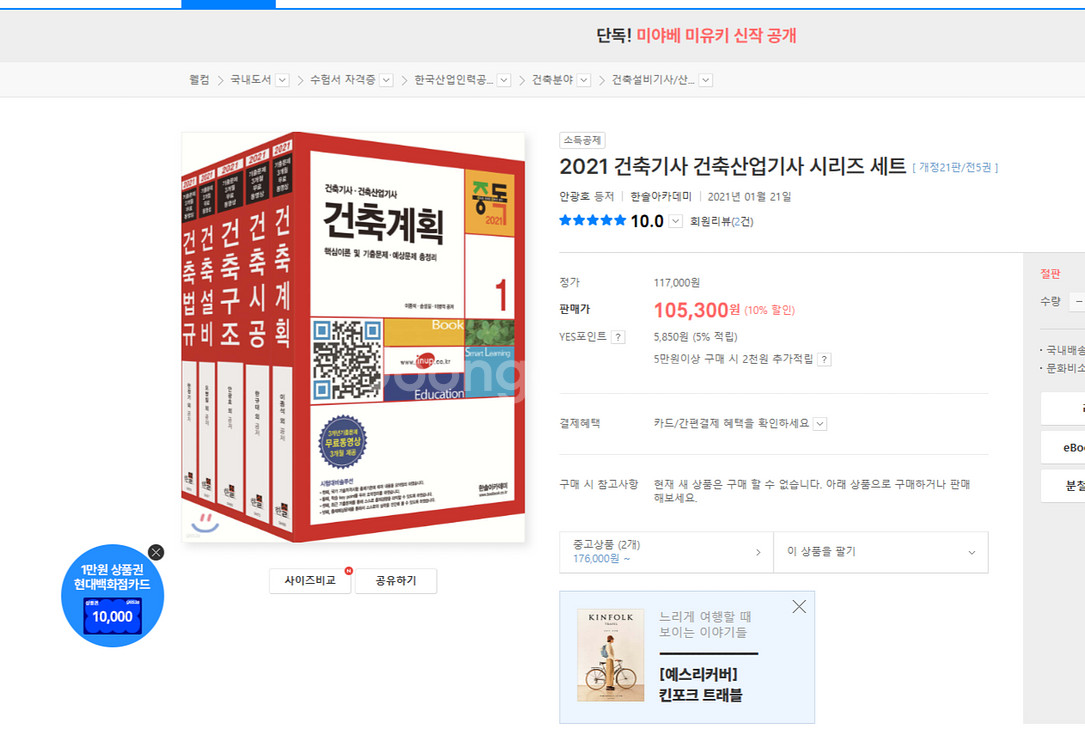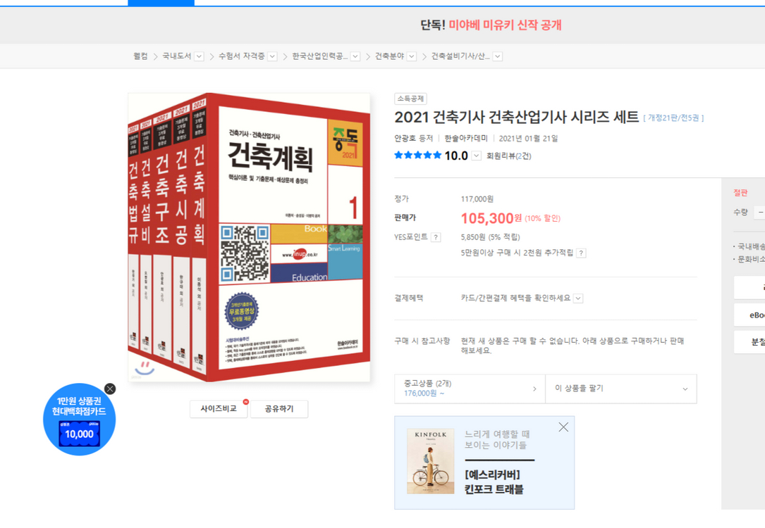 건축시공문제집에 5페이지만 필기 및 밑줄 그어져있어요 . (사진 참고) 건축법규문제집에는 2페이지만 밑줄 그어져 있어요 (사진참고) 공부하시는데 문제는 없어요!! 나머지 설비. 구조.계획은 얼룩 찢김.낙서 없이 깨끗한 새책입니다.