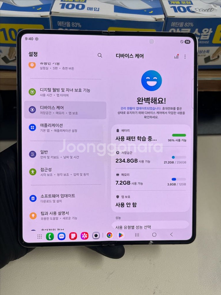 갤럭시z폴드4 입니다 256G 베이지색상이구여 외관 기스 찍힘없는 S급입니다 전면 액정 실기스 약간있구여 잔상없습니다 내부액정 기스 찍힘없고 잔상없습니다 모든기능 정상작동하구여 유심넣으면 바로 사용가능합니다 정상해지며 선택약정 가능합니다l (영상첨부합니다 확인부탁드립니다)
