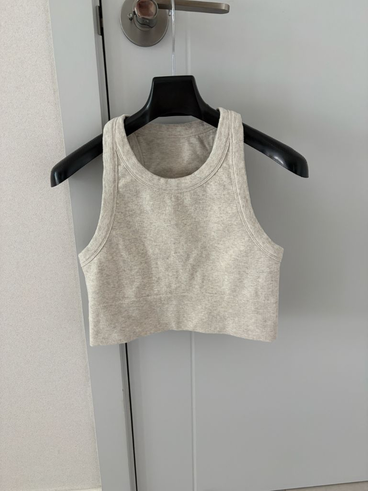 올초 알로 공홈에서 구매한 하이넥 브라에요.(구매사진첨부) 상품명은 ALO Seamless Delight High Neck Bra 입니다. 오트밀컬러, 라지사이즈로 다른 알로제품보다 한사이즈 작게나온거같아요. 패드는 없고 도톰한 크롭탑느낌이에요. 공홈과 매장에서 95,000원에 판매중입니다. 착샷이나 상세샷은 네이버쇼핑에 상품명만쳐보셔도 직구하는 몇개사이트에 모델분직접입으신거있더라구요. 참고부탁드립니다. 밝은컬러지만 오염트임없이 상태좋아요. 택배비 포함금액입니다.