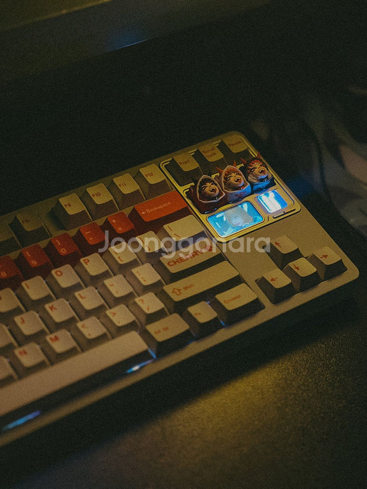 하우징 : qk80mk2 white 기판 : 무선 플렉스컷 RGB 상판 : 흰색 -> u9 모디색으로 도색 (셀프 아니고 업체 도색) 하판 : 흰색 + 필름 제거 X 스테빌 : 네테빌 (퍼마텍 윤활) 보강판 : QK80MK2 fr4 키캡 : 일당오 레드얼럿 축 : y3 53g 구성품 : 가방, 여분키캡 모두 포함 사진상 키피스룸 아티산 3개 포함시 +110,000 (아티산 블랙 오른쪽 뿔 부러져있습니다.) 사용 거의 하지 않아서 판매합니다. 무선도 가능하고 고유의 LCD 커스텀이 매력적인 키보드입니다. 오늘 구매시 택포 32 or 아티산 포함시 42에 드립니다.