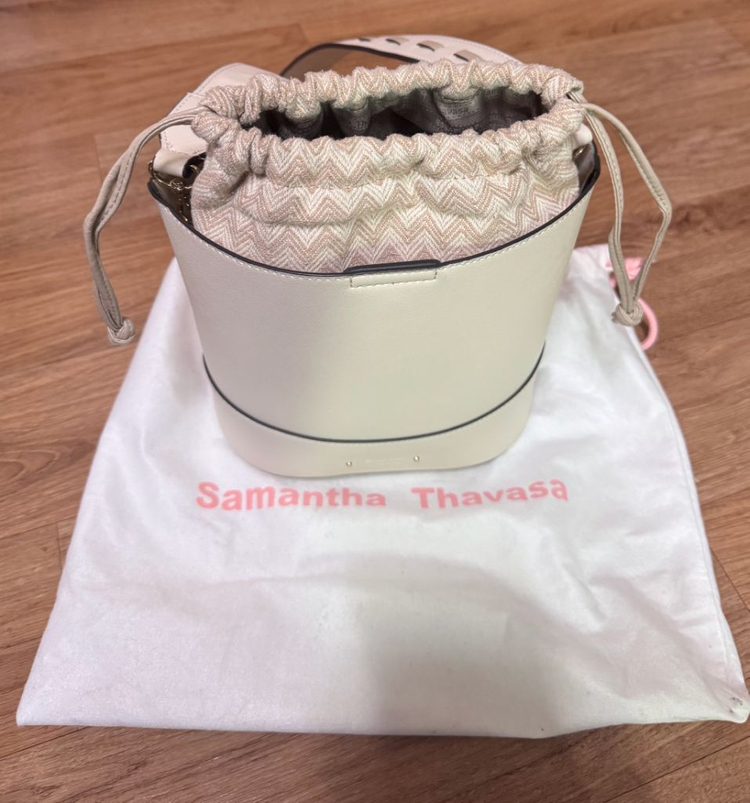 사만사타바사 해피 버킷백 색상 오프화이트 (아이보리) 표기는 오프화이트이나 백색 화이트 아니고 아이보리정도로 봐주심 될 듯해요. (사진과 색상 동일) 숄더 크로스 가능하고 탈부착으로 사용하심 돼요 내부 파우치는 사용감이 조금 있습니다 (파우치 스트링, 파우치 올트임은 사진에 체크해두었어요) 올트임은 보이지 않는 부분이고 스트링은 제가 당기지 않고 사용했는데 유연한 가죽이라 약간 해진 부분(한 군데), 스트링 특성상 눌림 정도 있어요 사용에는 문제 없는 사용감이구요 그 외에는 깨끗합니다 (사진과 상태 동일하니 찬찬히 봐주세요) 감안하여 저렴히 올립니다 (네고 불가합니다 ㅠ) 더스트백, 보증서 같이 드려요 신세계센텀시티점 (21년도 6월 ssg 구매) 휘뚤마뚤 들기 좋은 가방이에요 ✅ 거래 후 교환X 반품X 환불X 문의는 채팅 주시고, 문의 없으시면 바로 결제해주시면 됩니다