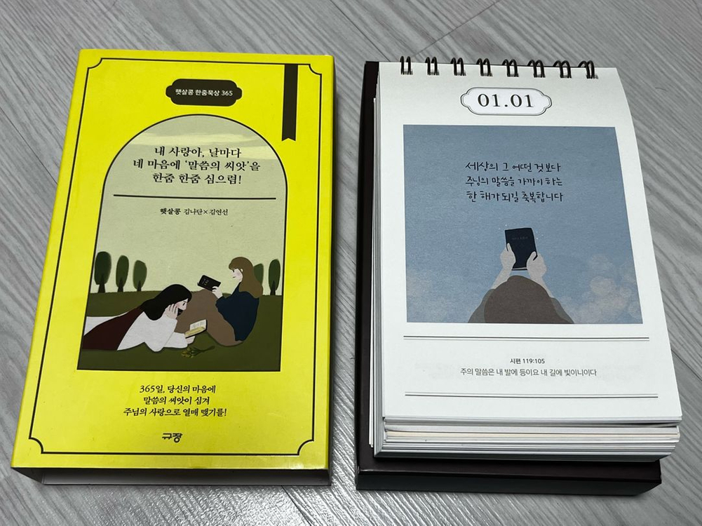 햇살콩 한줌묵상 365 묵상 달력 세트입니다. 하루하루 주시는 말씀으로 묵상하며 하루를 시작해보세요. 년도가 있는 달력이 아니라 영구적으로 사용가능합니다. 사용하지 않아서 새제품이라고 보시면 됩니다. 별도 문의 없으시면 바로 안전결제 부탁드려요!