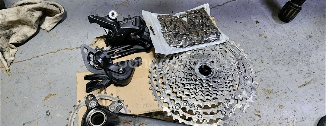 11단 데오레 구동계 4가지 뒷 드레일러와 11단 변속레버, KMC 체인은 새제품 1회 사용한 제품으로 뒷 드레일러는 M5100 SGS로 51T 완벽 지원합니다. 뒷 레버는 특이사항 없으며 체인길이는 넉넉합니다. 스프라켓은 데오레 M5100 11-51T이며, 3개월전 신품 구입해 주 1회씩 3-40KM 내외로 사용한 신품급이며, 깨끗히 세척해 놨습니다. 위에 데오레 구동계 3가지와 체인 일괄 세트로 직거래로 택포 14만원에 판매합니다. 오셔서 6만원 추가시 조립및 세팅도 해드립니다. 그외 번개장터 가격대로 직거래는 고양시 현천ic 인근입니다. 응 육이칠공공삼팔팔