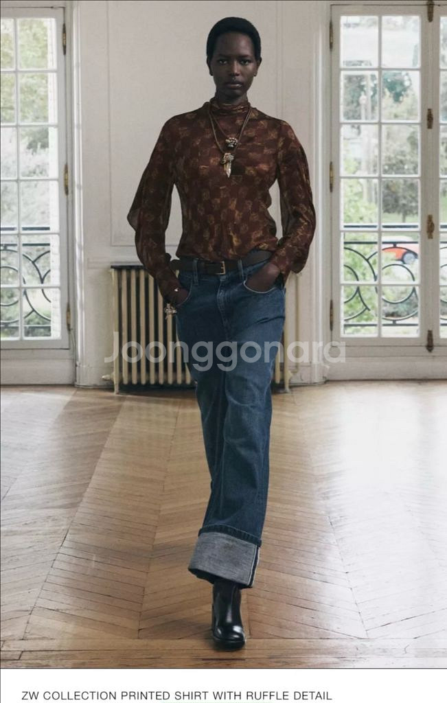 자라 러플 프린티드 셔츠 S 새상품 동그라미 표시 확인, 예민한 분은 피해주세요 📌택배 일택 +3.8, 반택+1.8 📌찔러보기•교환신청•환불•네고•사이즈문의❌