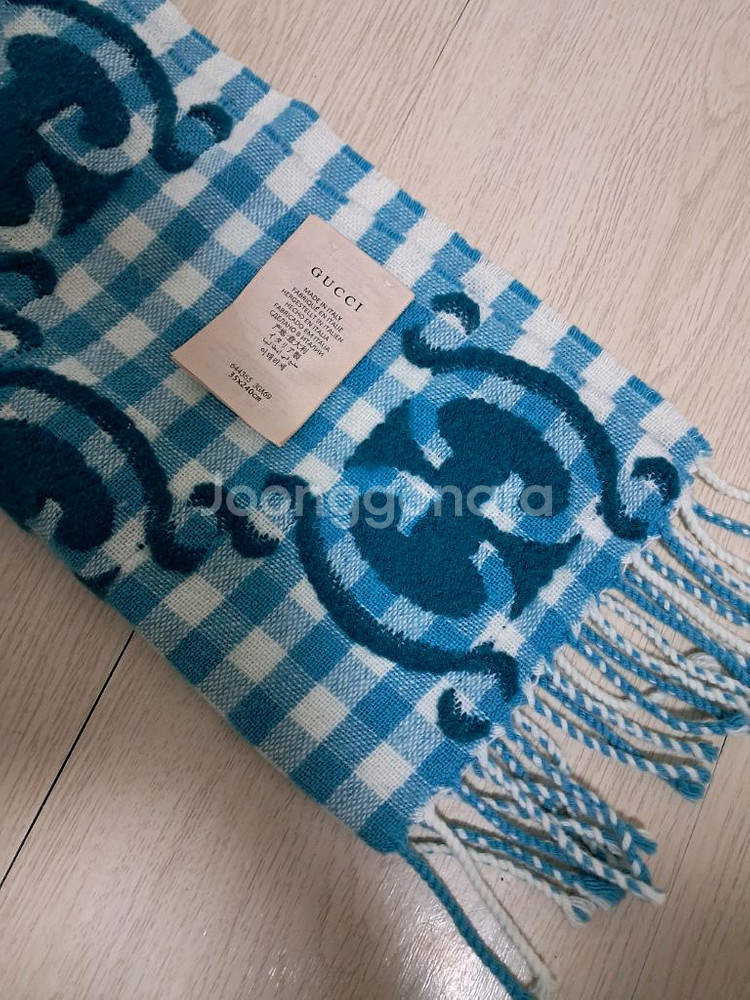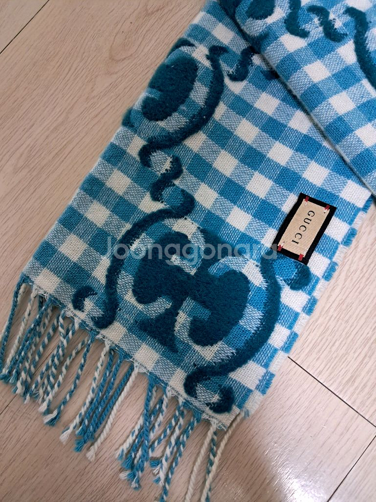 하늘색 구찌 GG 자카드 스카프 머플러입니다. 톡톡 튀는 색감과 GG 로고가 포인트인 제품입니다. 얇은 재질이 아니라 겨울에 따뜻하게 사용가능해요. 저는 사용을 안할 거 같아서 저렴하게 급처합니다 편하게 연락주세요