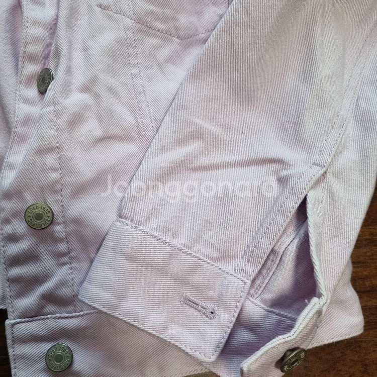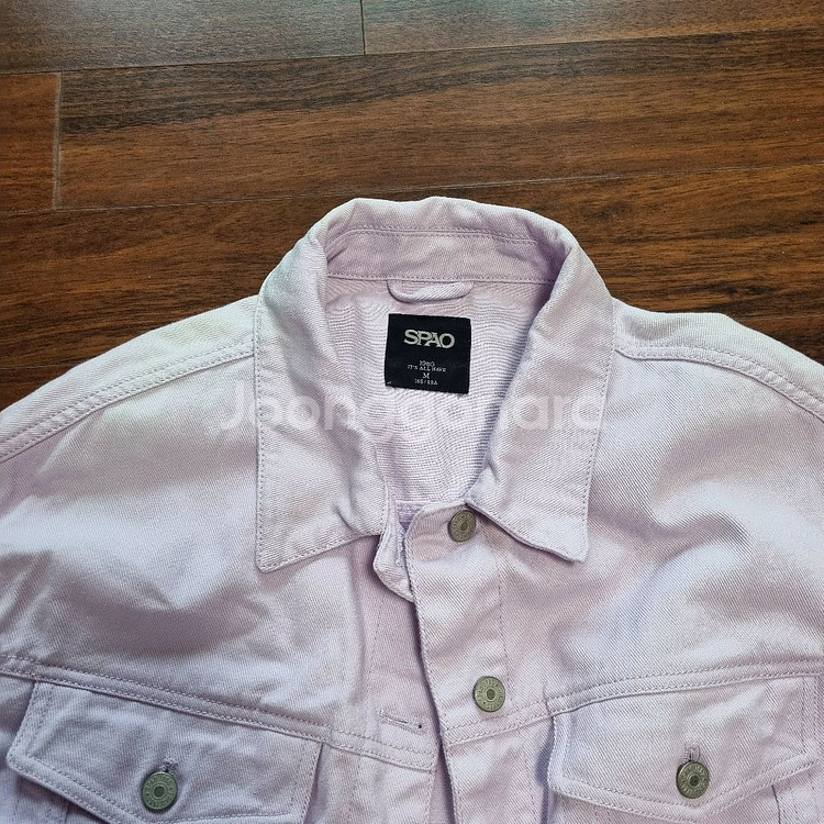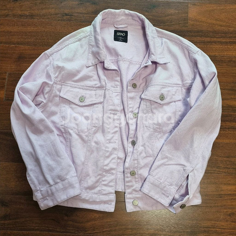 SPAO 여성 트러커 재킷 90M사이즈로 사이즈표 참조해주세요. 라이트퍼플색상 spjk923G24 색감은 착샷사진이 가장 비슷합니다. 핑크색감이 도는 연보라예요. 단단하고 상태 좋으나 창가에 보관했더니 햇빛에 오른쪽어깨부터 목부위가 하얗게 탈색 됐어요. 밝은 파스텔톤이라 나쁘지는 않은거 같긴한데 티나긴해요. 판매를 위해 손세탁 해두었어요.