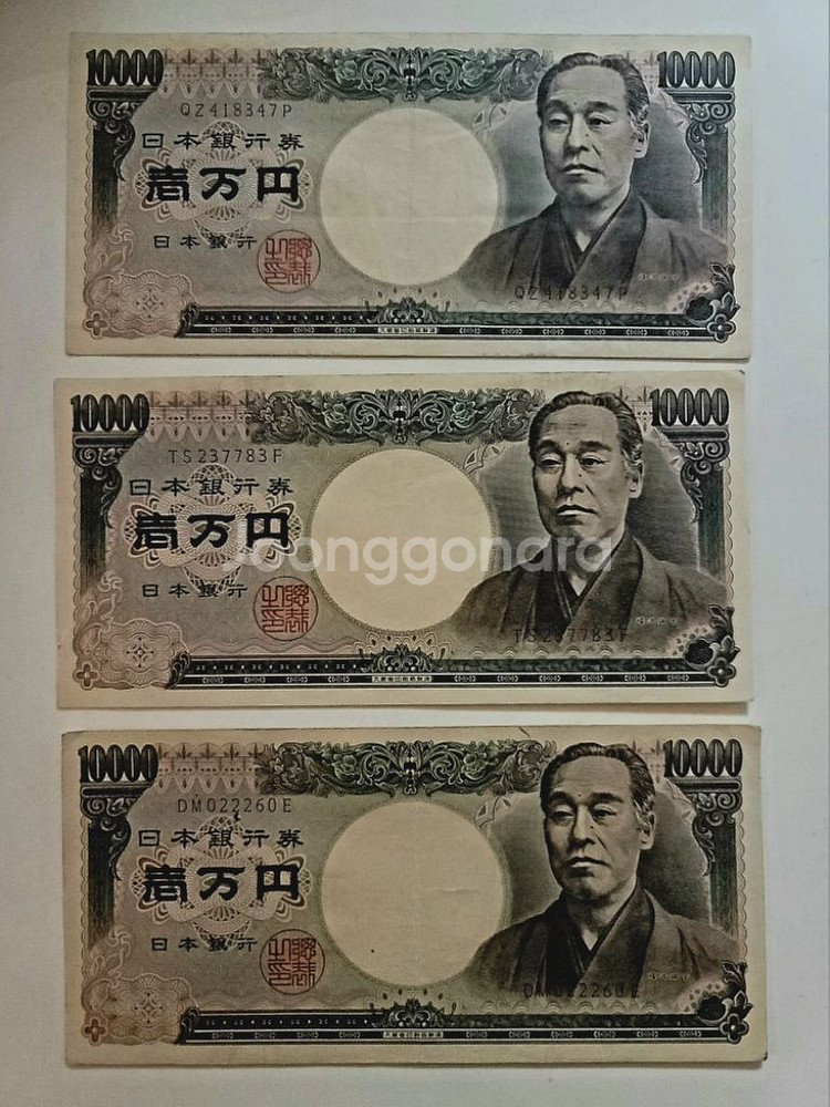 일본화폐 옛날돈 구권 입니다 1만엔권 3장 1천엔권 3장 있습니다 부분적으로 판매되어 다시 올립니다 지금도 사용이 가능하지만 아까워서 판매합니다 개별판매도 가능해요 화폐수집에 관심있으신 분들 연락주세요 우체국등기로 보내드립니다 문자로만 받을게요