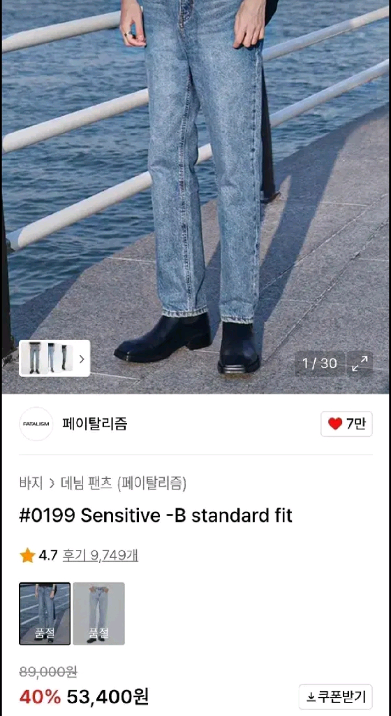 개인정보(거래정보)를 주고받는 행위는 사기에 노출될 수 있으므로 즉시 중고나라로 신고해 주세요페이탈리즘 데님팬츠 48사이즈입니다. #0199 Sensitive -B standard fit 010-9300-2725