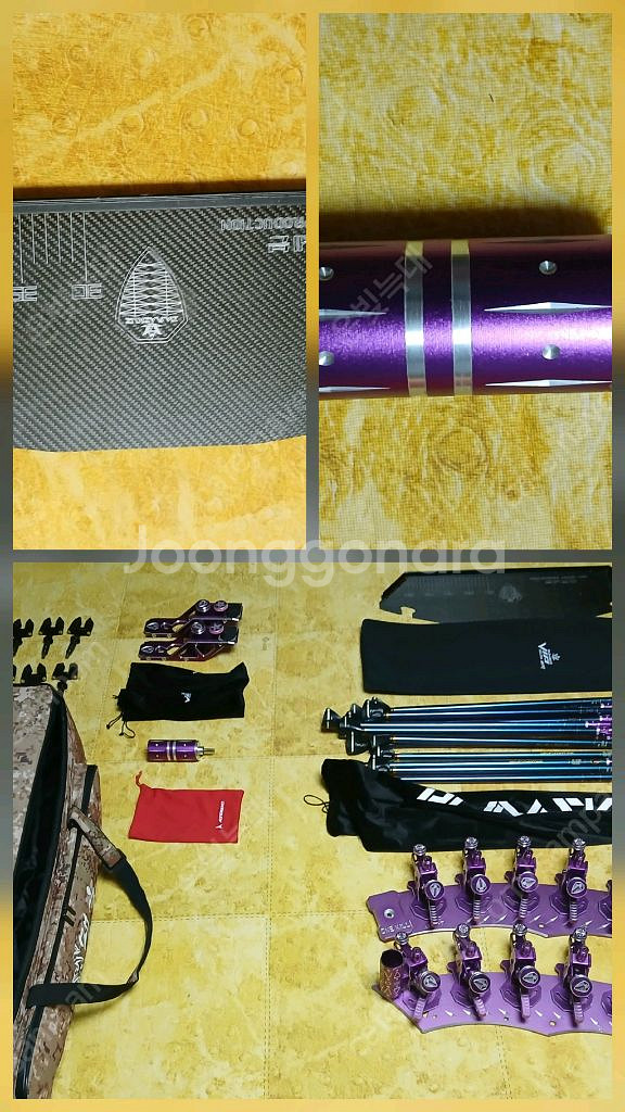 다마스쿠스 바이퍼 받침틀 12단에 2절 받침대이구요. 약간의 사용기스는 있습니다. 상태는 깨끗한 편입니다. 받침틀 가방은 맹호 가방입니다.
