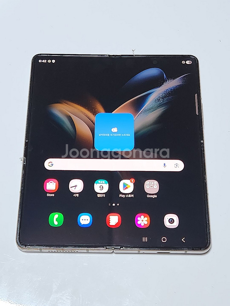 A급) 갤럭시Z폴드4 256G 무잔상 베이지 12525 1. 외관 - 액정 : 내부 깔끔/외부 잔기스 조금/무잔상 번인현상 없습니다. - 외관 : 뒷판 깔끔/테두리 잔기스 살짝 깔끔. 2. 상품설명 - 색상 : 베이지 - 최초통신사 : KT (아무 통신사나 유심 옮겨 사용 가능합니다) - 구성품 : 기기단품 3. 기타 - 25% 선택약정 할인 적용 가능한 제품입니다 - 직거래 서울 교대역 가능합니다 - 택배 4시 50분까지 당일발송 가능합니다 - 상품번호 : 12525