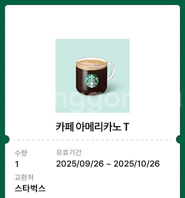 스타벅스 아메리카노 T사이즈 📌유효기간:2025.10.26 입금확인 후 바로 보내드립니다!