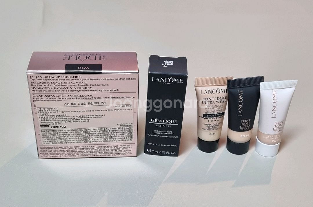 랑콤 스킨 이돌 3 세럼 파인커버 쿠션 14g 색상호수 W10 (리필 없이 본품만 있는 제품입니다.) 미사용 새상품. 사용기한 28년 2월까지 ● 사진상의 파운데이션 5ml과 제니피끄 세럼 7ml 드립니다. 사용기한이 26년 2~12월까지로 짧고 파운데이션 색상 호수 b01, po01 제각각이고 리뉴얼 이전 모델입니다. 에눌문의X 교환 환불 안돼니 신중한 거래 부탁드립니다. 쿨거래 하실 분만 연락 부탁드립니다 :) gs편의점택배비 2000원 추가 일반택배 4000원 추가 됩니다. 발송할 때 송장사진 찍어 보내드립니다^^