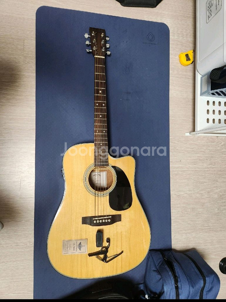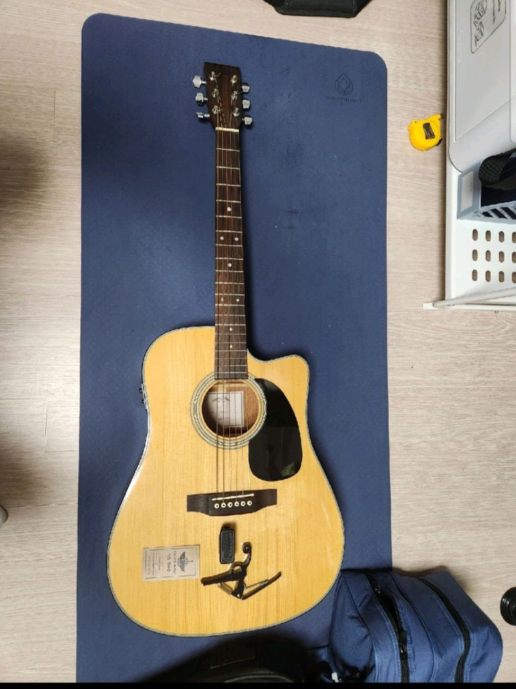 시그마 기타 DMC-1STE 모델입니다. 가난한자의 마틴이라 불리는 시그마 기타 입니다. 소리는 진짜 좋아요 구매 가격은 58만원이었어요. 뒷판에 잔기스 있습니다. 소리는 문제 없습니다. 전원작동여부 모두 확인 했고 튜닝기랑 있는것들 모두 드립니다. 기타줄도 드립니다 아파트라 칠수없어서 내보냅니다. 택배거래 불가