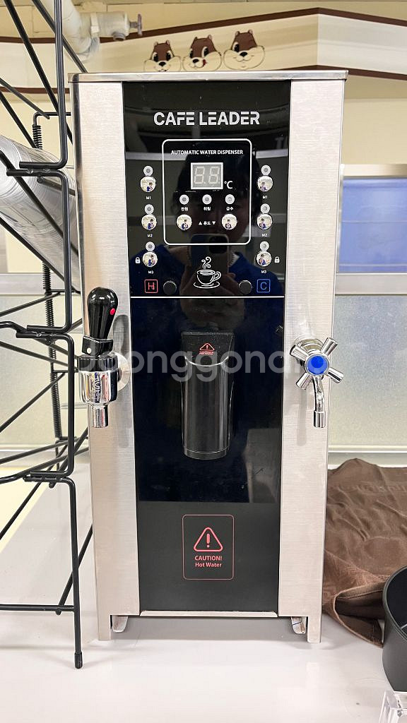 카페리더 자동 온수 디스펜서 NS-5000 모델입니다 - 제조일자: 2022년 9월 - 정격전압: AC 220V, 60Hz - 온도 범위: 75~95℃ 자동 온수 디스펜서로 편리하게 사용 가능합니다
