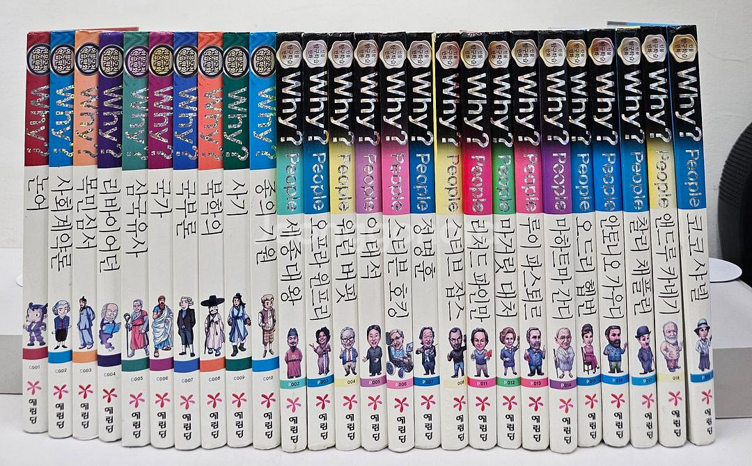 - 책명 : Why 시리즈 ( 피플,인문고전,한국사,세계사, 영어) - 출판사 : 예림당 - 구성 : 총 56권 피플 16권 (1~19중 2,9,10없음) 인문고전 10권(1~10) 활동지 미사용 한국사 14권(1~14) 활동지 미사용 세계사 12권(1~12) 활동지 미사용 3스텝 와이그랜마영어 4권 활동지 미사용 - 상태 : A+급(외부-생활감, 내부-찢김,낙서없음) - 활동북 미사용 - 판매가 : 80,000원(택포) 새책을 구매하기에는 가격이 부담스럽고 가성비를 생각하신다면 이 전집을 추천드립니다. 다른 책들도 많으니 보시고 일괄로 구매할경우 네고도 가능합니다~