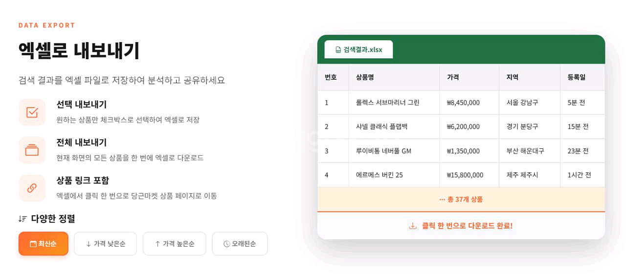 당근마켓에 뿌려져있는 모든상품을 누락없이 검색합니다. 어중간하게 떠도는 gpt가지고 만든 어설픈 검색기 판매다한테 허위광고 그만속으시고 편하게 검색하세요. 1회 검색도가능합니다. 검색시간 : 5분내 이외 각종 자동화 프로그램 개발 및 판매 홈페이지제작, db수집등 가능합니다 연락주세요 ~~