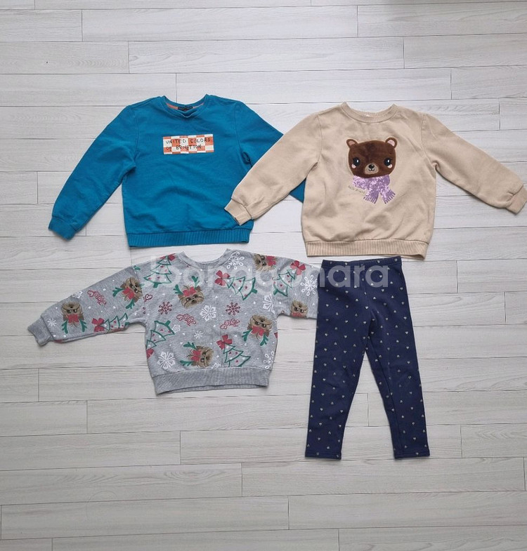 여아 티셔츠 3, 기모바지 1 베네통 티셔츠 (블루) h&m 티셔츠 (곰돌이) 니켈로디언 (크리스마스) Carter's (네이비 하트 기모바지) 모두 귀엽고 예뻐요 가을 겨울 편하게 입기 좋습니다 5~7세 정도 가능