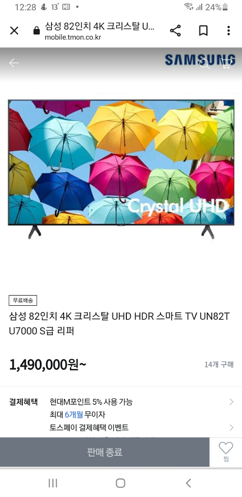 최신 삼성 85인치 4K 스마트 TV 특가한정판매 !