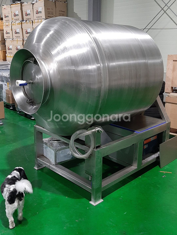 제품명: 600L 진공 텀블러 (Vacuum Tumbler) 📦 상태: 신품 / 미사용 / 즉시 납품 가능 용량: 600리터 (약 500~600kg 작업 가능) 재질: SUS304 스테인리스 기능: 진공·회전·속도조절·시간조절 고정밀 디지털 제어 패널 및 진공 게이지 장착 내부 균일 혼합 구조 → 염지, 절임, 양념, 숙성 공정에 최적화