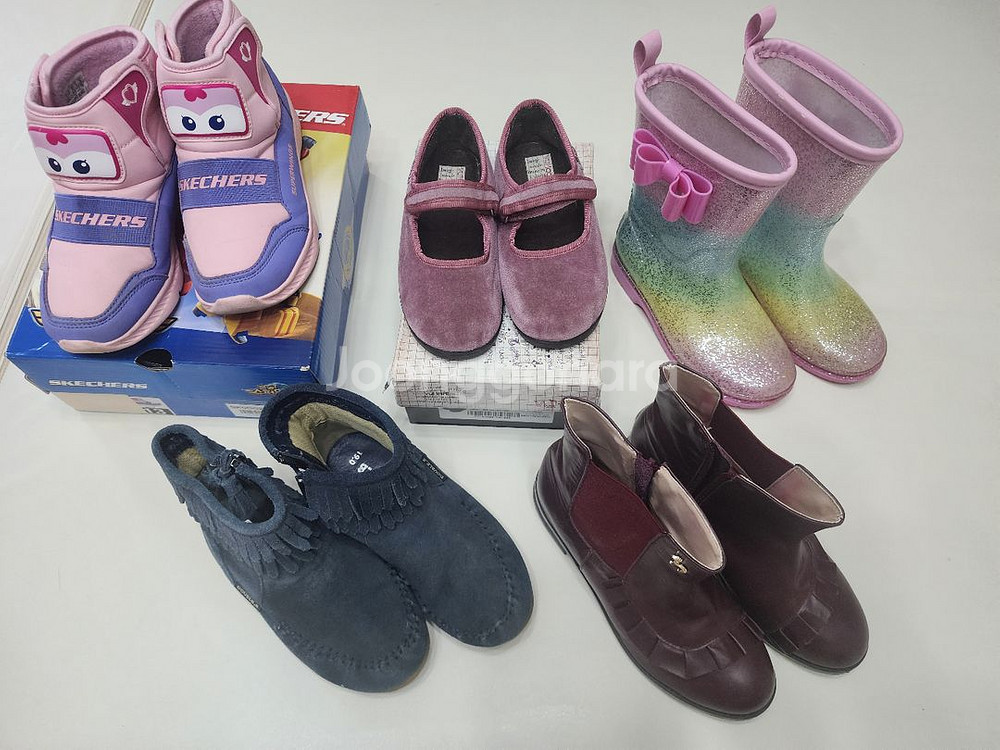 앞줄 - 미키하우스 190 , 헤지스 가죽부츠 200, 뒷줄 - 스케쳐스 슈퍼윙스 부츠 190 , 블라디 메리제인슈즈 e29(185), 빔보빔바 부츠 190 신기던신발이라 당연히 사용감있어요. 일괄택포 사용감 정도 여부나 사이즈 문의는 받지않습니다. 각자 검색해보시고 구매부탁드려요 . 아이들 발모양도 다 틀리기 때문에 판매자에겐 곤란한 질문입니다.