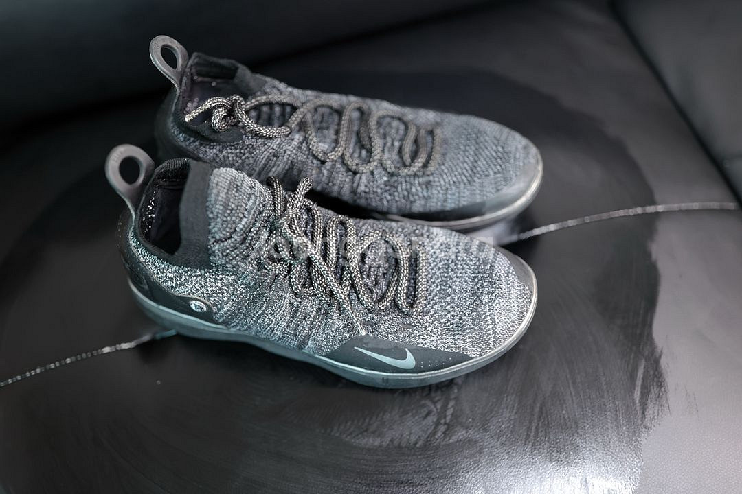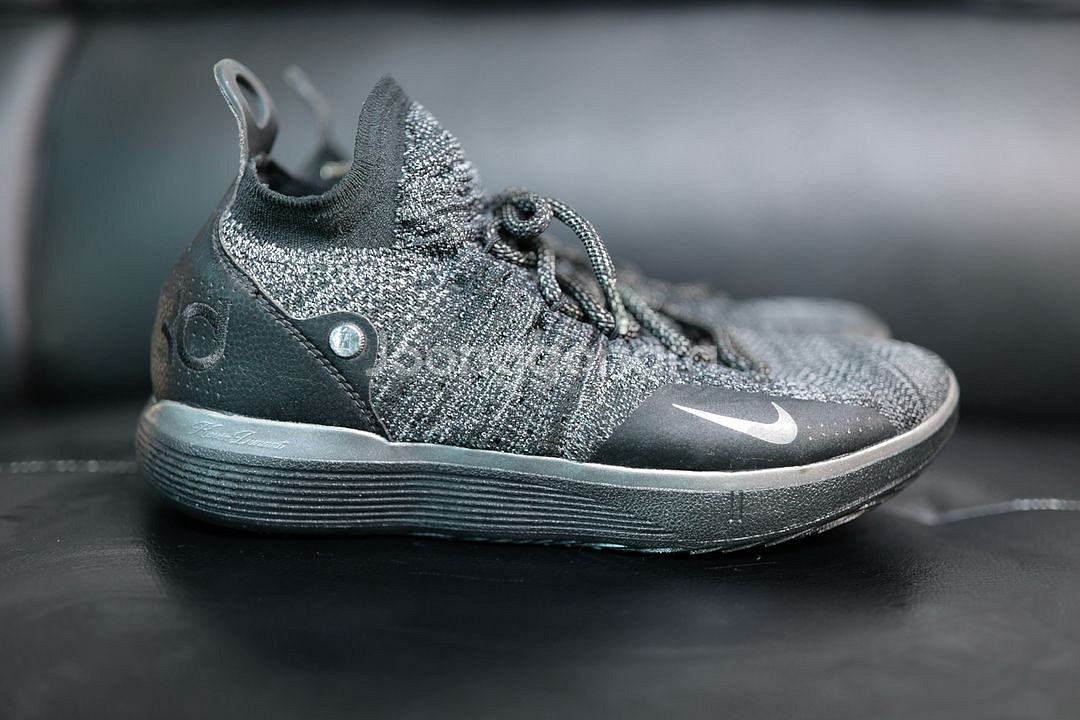 브랜드/모델명: Nike KD 11 (Kevin Durant 시리즈, 블랙 컬러) 사이즈: US 10.5 / UK 9.5 / EUR 44.5 / 28.5cm → 한국 남성 체형 기준 280mm (보통 L 사이즈) 정도 Flyknit 갑피 (니트 소재로 착용감 & 통기성 우수) 미드솔에 React + Zoom Air 쿠셔닝 (바닥창 투명창으로 확인 가능) 힐사이드 KD 로고 자수 & Kevin Durant 친필 사인 각인 “이 신발이 그냥 신발이 아녀유~ 케빈 듀란트가 직접 사인까지 해논 모델이라유. 농구할 때는 물론이구, 청바지나 조거팬츠에다 툭 걸쳐도 간지 좔좔 흐른다니께유. 발 넣어보면 쿠션감이 폭신허니 하루종일 신고 다녀도 발 안아프다유. 상태도 아직 쌩쌩허니, 득템할 사람 얼릉 챙겨가유잉”