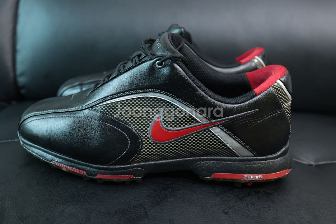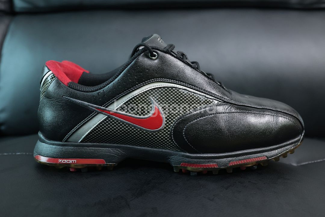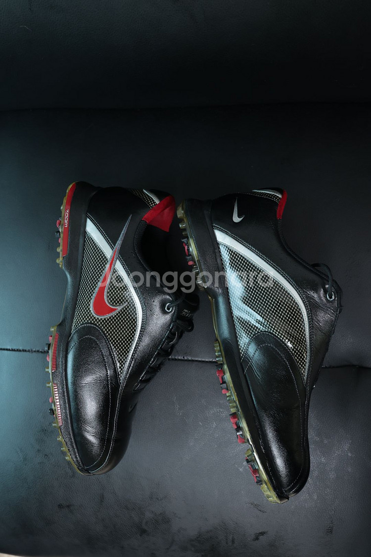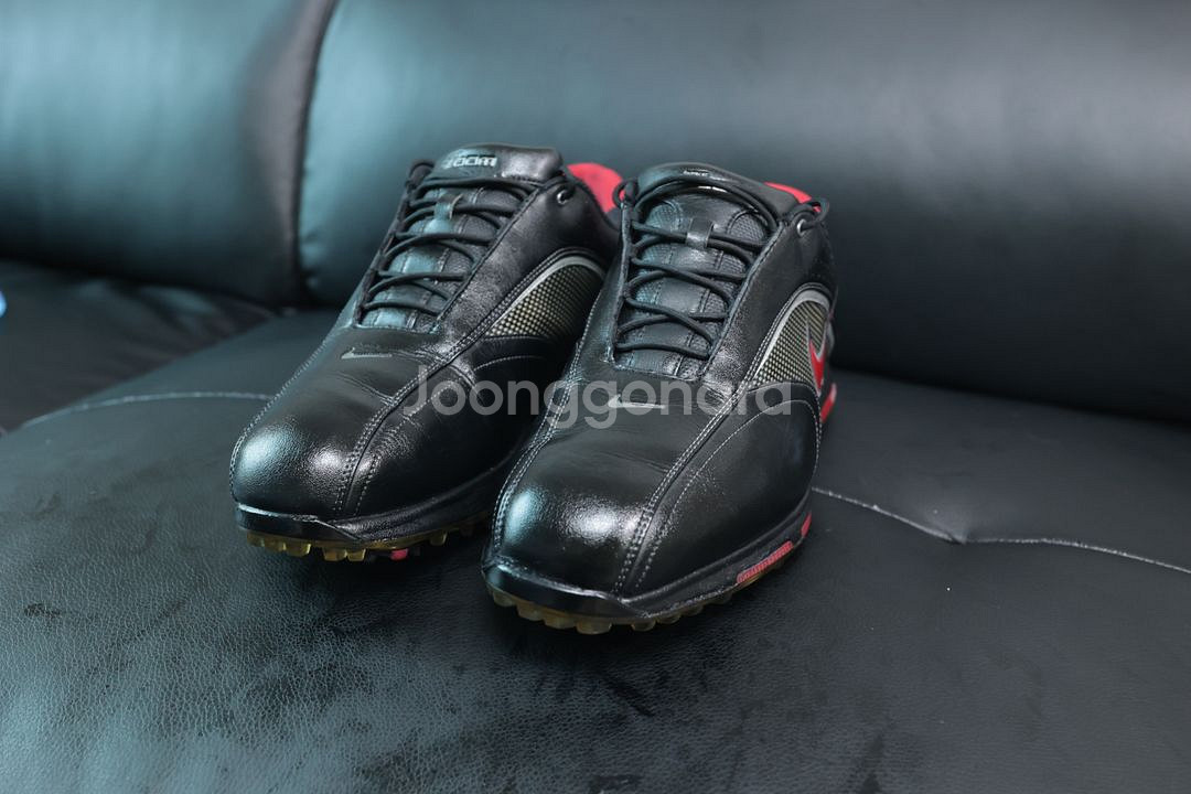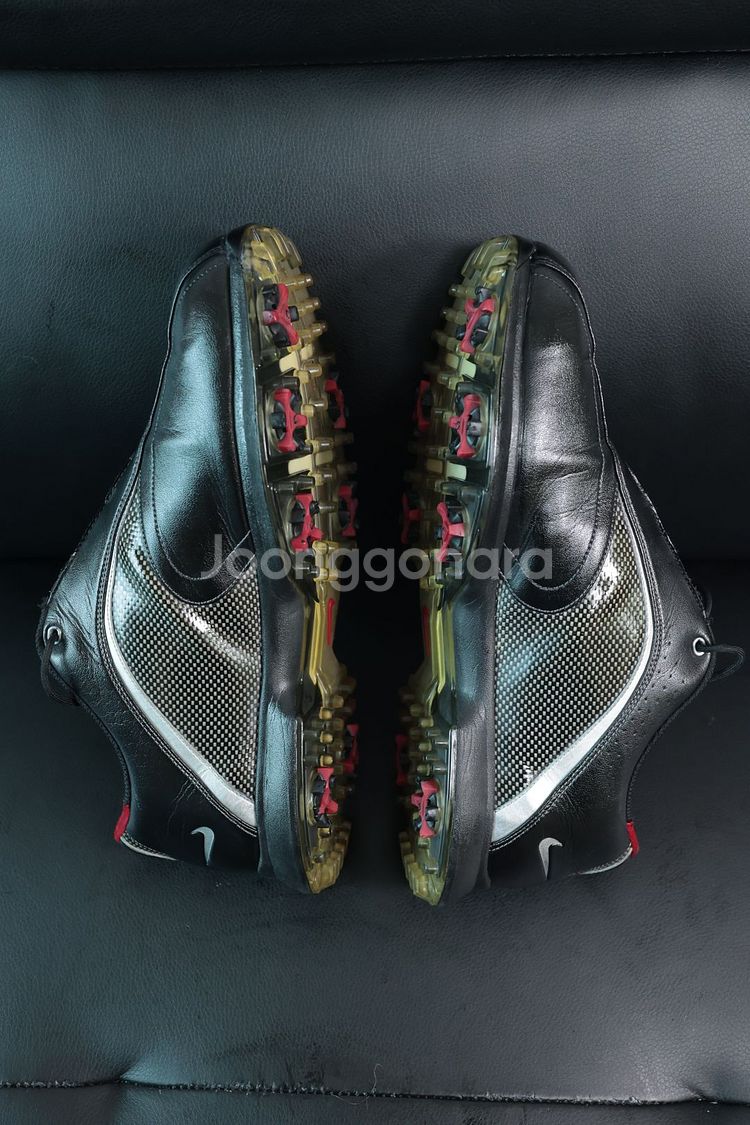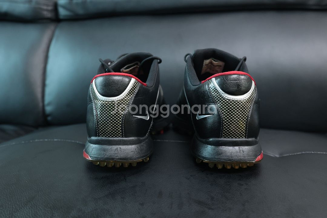 Nike Zoom Air Golf Shoes (425039-061) US 10W / UK 9 / EU 44 / 28cm 한국 남성 기준: 보통 275~280mm 발 사이즈 착용자에게 적합 한정판 + 단종 모델 희소가치 有 소재 & 디테일 고급 블랙 가죽 소재 + 사이드 카본 패턴 디테일 줌 에어 쿠셔닝 (Zoom Air) → 장시간 라운딩에도 충격 흡수 우수 밑창: 교체형 소프트스파이크 (빨강/검정 조합) → 접지력 극대화 레드 스우시 포인트, 힐 패딩 레드 컬러감 → 클래식 + 스포티 상태 전체적으로 사용감 적음 (사진 참조) 가죽 주름은 자연스러운 착용감 아웃솔 스파이크 상태 양호 (교체 필요 없음) 클린업 후 비닐 포장 완료 → 보관 상태 우수 고급 블랙 가죽에 레드 스우시 포인트, 줌 에어 쿠셔닝 들어간 단종 모델이에요. 접지력 좋은 스파이크 그대로 살아있고, 상태 아주 깔끔합니다. 275~280mm 착용하시는 분들께 강추! 단종된 모델이라 소장가치 충분~ 필드에서 감각 살리고 싶은 분, 얼른 데려가세유!