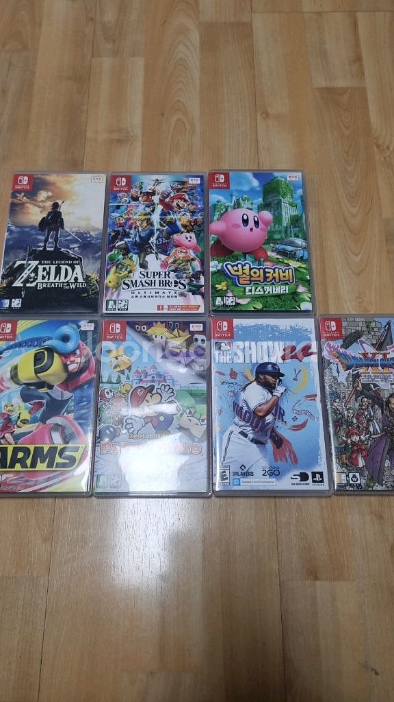 -닌텐도 스위치- 더쇼 24 60000 목장 이야기 23000 젤다의 전설 야생의 숨결 X 아틀리에 라이자 2 26000 암즈 23000 드래곤 퀘스트 11S 48000 슈퍼스매시 얼티밋 37000 종이접기킹 36000 커비 디스커버리 43000 작동 확인 하였고 사진 처럼 케이스 같이 있습니다. 구매 희망시 1:1 네이버 채팅이나 안심연락처로 문자 부탁드립니다 .