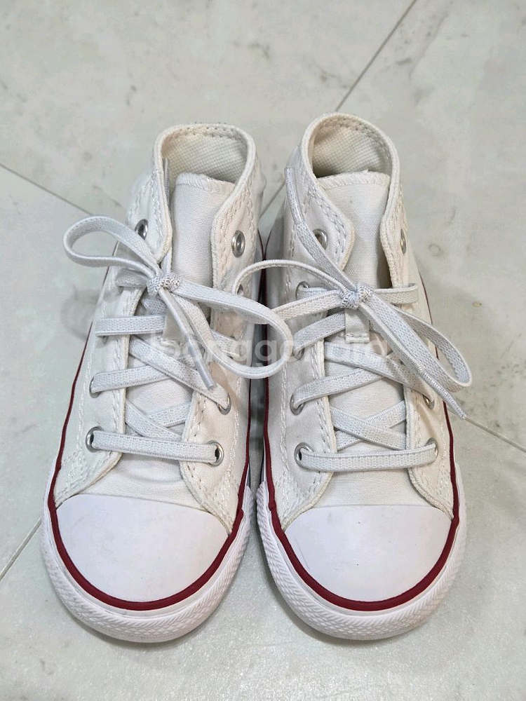 시착해본게 다입니다. 실외 나간적 없구요. 올화이트라 보관상 이슈로 때 탔길래 혹시나싶어 업체에서 세탁완료 했습니다. 사진상은 누런데 실제는 완전 하얗습니다. 신발끈은 고무끈으로 바꿔놔서 당겨서 신기면 됩니다. 반값택배 포함. 일반택배시 2천원추가입니다.