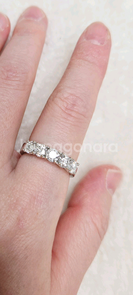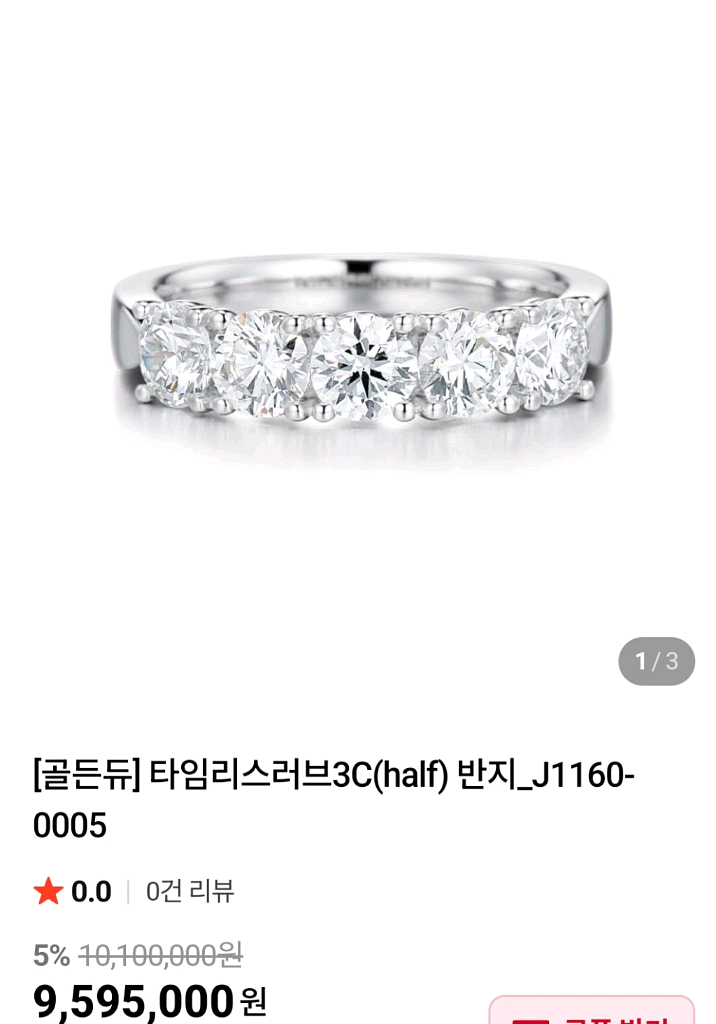 ** 자세히 살펴보니? 아무래도 반지여서 손바닥 닿는 부분에 미세 스크래치가 좀 있어서 가격 조정합니다. 골든듀 다이아몬드 반지입니다 타임리스러브3C(half) 모델로 섬세한 디자인이 돋보입니다. 다이아몬드 총 중량이 1.5캐럿입니다 구매일은 2023년 4월이고 구매장소는 현대백화점 킨텍스점입니다. 각각 5개에 대한 다이아몬드 감정서가 있습니다. 작은 사이즈들과는 비교가 안 될 정도로 존재감이 뚜렷하고 다이아몬드 등급이 높아서 반짝임이 너무 예쁩니다. 11월에 골든듀 인상 소식이 있어서 고민하다가 제가 매일 착용하는 반지 외에는 거의 착용을 하지 않아 내놓습니다.