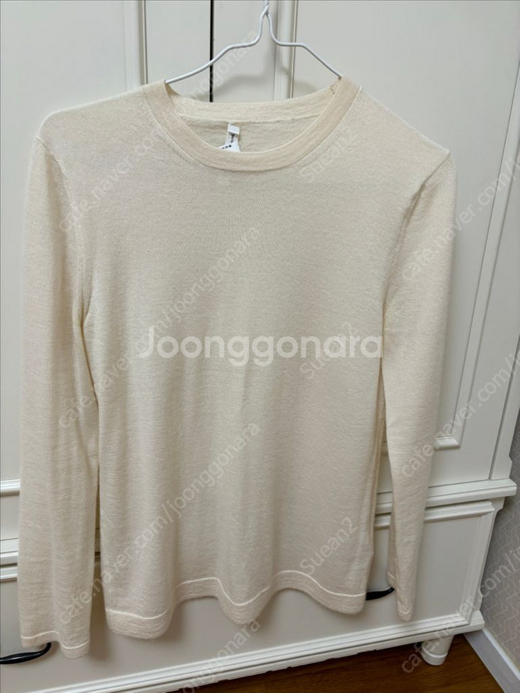 The 캐시미어 니트 입니다. 캐시미어 니트중에 촉감이 제일 좋은거 같습니다 (부들부들한느낌) 데일리로 입으시기 좋으시고 얇은니트로 봄가을 입으시기 좋아요 (목있는부분 택이 세탁하면서 떨어졌네요) 사용감 있으나 상태 괜찮은 편이에요. 개인 관계로 환불 반품 불가 합니다.