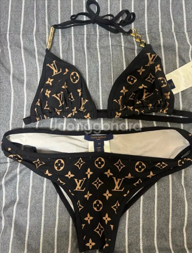 루이비통 모노그램 패턴 비키니 세트입니다. 선물받고 2-3번 실착했습니다 택은 안떼고 그대로 붙어있습니다. 급처하는 관계로 싸게 판매합니다 사이즈는 36입니다. 따로 영수증 등이 없는데 정품검수 하시고 가품이면 환불해드립니다. 문의 없으시면 바로 안전결제해주시면 됩니다