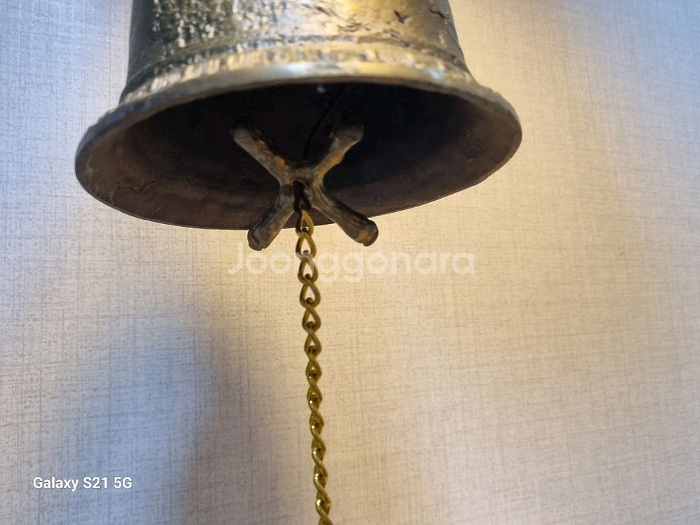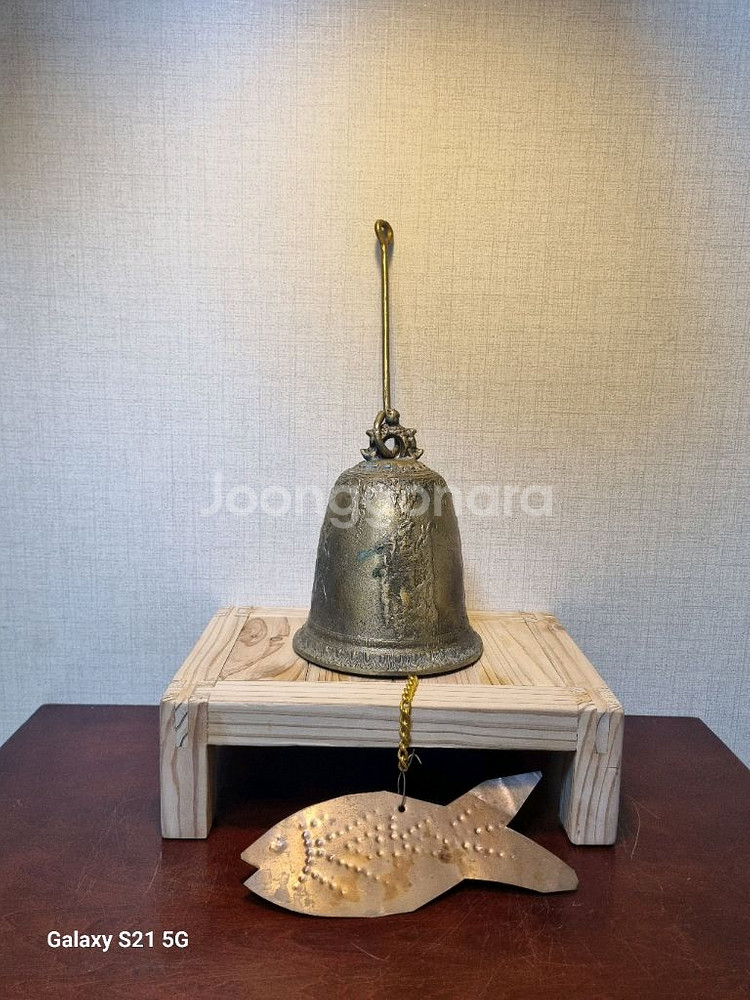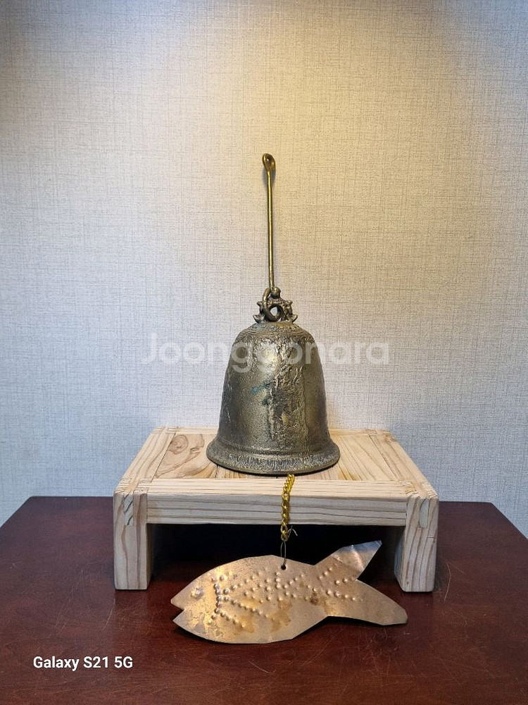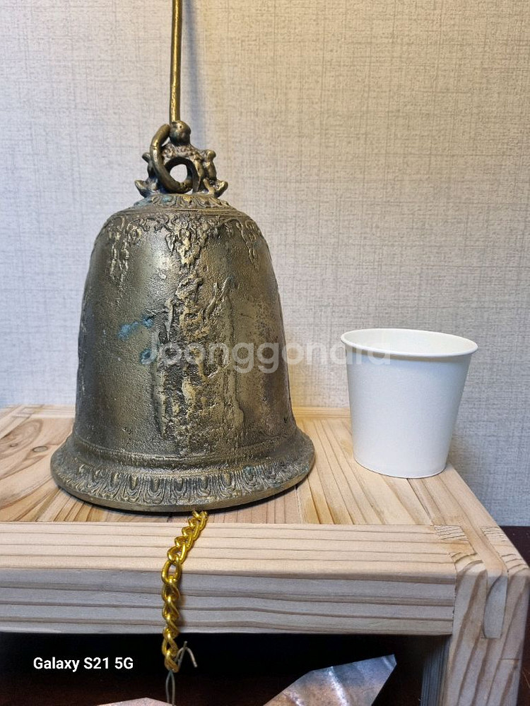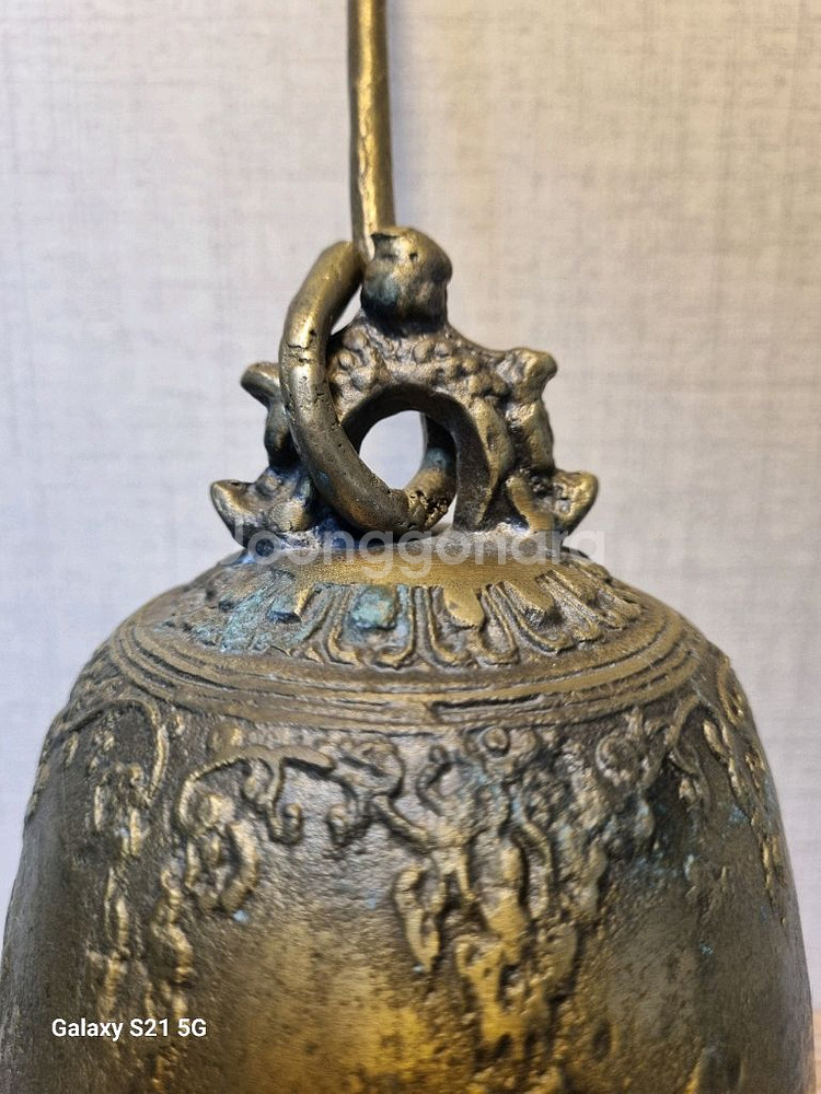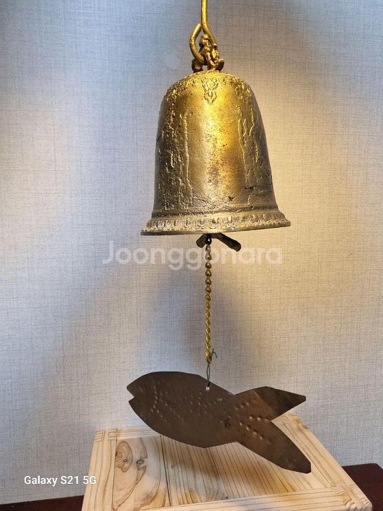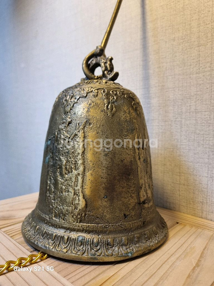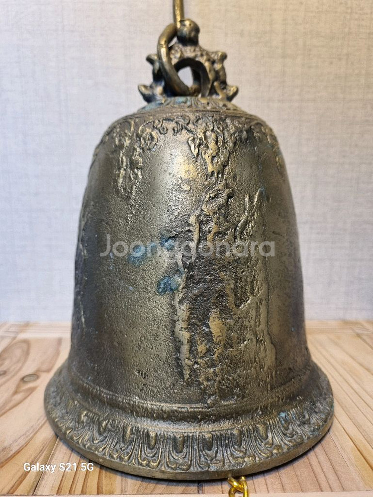 사이즈 종 단독 사이즈- 높이 19cm 폭 15cm 재질 동 무게 약 2kg 사찰에서 쓰는 사이즈 큰 오래된 풍경 입니다. 소리가 아주 맑고 청아합니다. 실사용 하셔도 좋고 장식으로 두어도 좋습니다.