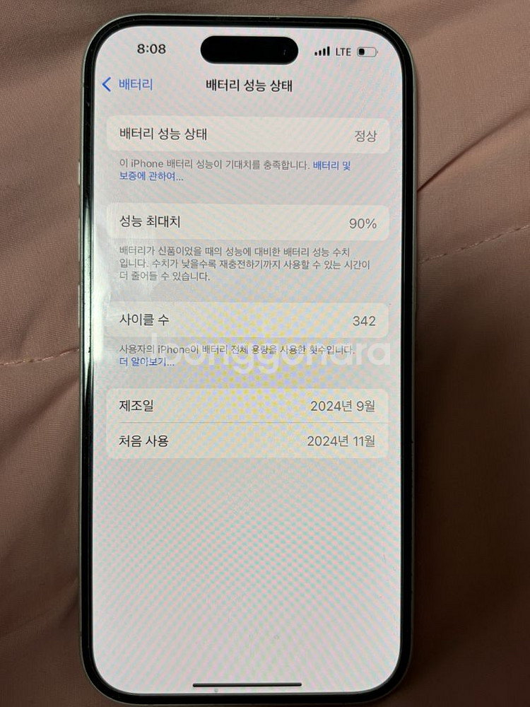 아이폰 16 256기가 화이트 색상 판매합니다 배터리 성능 최대치는 90%입니다 제조일은 2024년 9월입니다 자급제라 유심 꽂으시면 바로 사용 가능합니다😊 전체적으로 상태 깨끗하나 하단 충전기 부분, 오른쪽 측면 버튼 사용감 확인해주세요!!