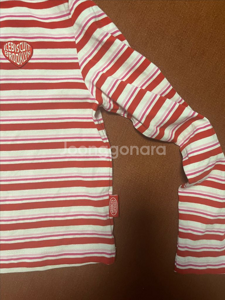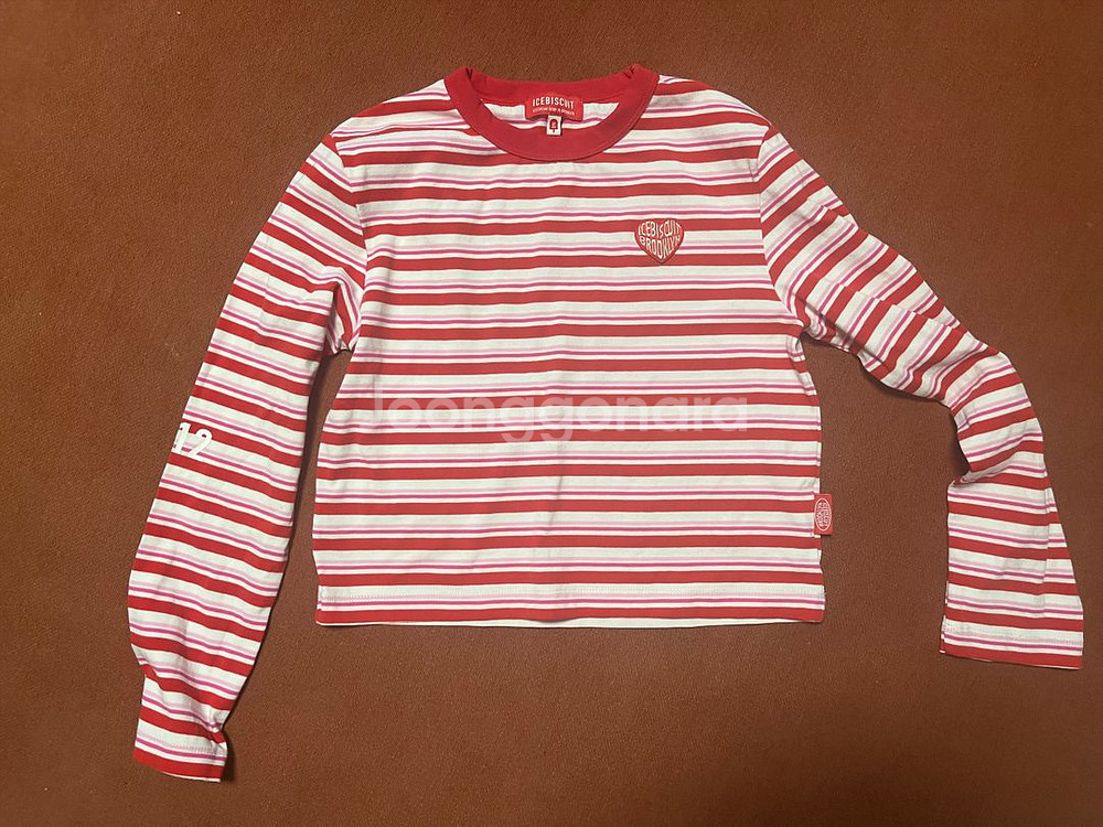 ICEBISCUIT의 빨간색과 흰색 스트라이프 긴팔 티셔츠입니다 - 가슴 부분에는 ICEBISCUIT BROOKLYN 하트 로고가 있습니다 - 소매에는 숫자 12가 프린트되어 있습니다 - 면 100% 소재로 부드럽고 편안한 착용감을 제공합니다 사이즈 145: 1번 착용 후 세탁보관/ 건조기미사용 상태좋음/ 흠없음