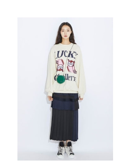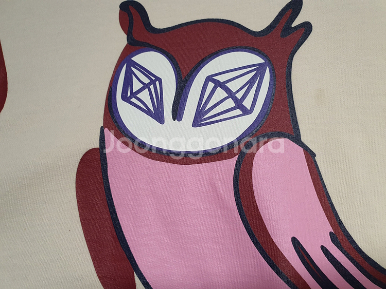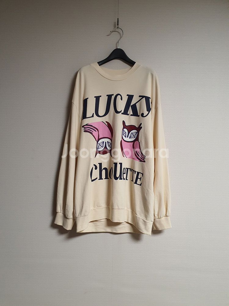 럭키슈에뜨 레터링 맨투맨 티셔츠 36사이즈 정품 사이즈 36 총장 78 가슴반품 59 럭키슈에뜨 아이보리 컬러의 고급스러운 티셔츠입니다 사이즈 36으로 55정도이고 얇은 맨투투맨 티셔츠 소재로 봄 가을에 입기 괜찮아요 신축성 있는 소재이고 소매끝과 밑단 시보리, 앞쪽 프린팅된 레터링과 부엉이 디테일 있어요 기장감 살짝 있는편이고 캐쥬얼하고 유니크하게 연출하시기 좋으세요 밝은 컬러라 잔잔한 오염 있어 저렴하게 드리고 소재택 다음 사진 봐주시면 되시며 뒤쪽 실버 스티커는 드라이시 떨여졌는데 정품 맞아요 예민하신 분 연락 사양하며 사진 그대로 상태로 컨디션 좋아요