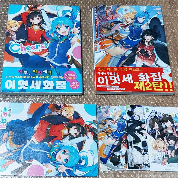 "미시마 쿠로네 화집 Cheers! 미시마 쿠로네 화집 2 Blessing!!" '초판 한정' 굿즈, 띠지 있는 국내 정식 발행 된 아트워크 아트북 일괄 판매합니다. '이 멋진 세계에 축복을!' 원작에서 미디어 믹스까지 일러스트를 엮은 화집으로 아카츠키 나츠메의 신작 단편 소설도 수록되어 있습니다. 포스터 미사용으로 비닐로 "외부 포장"해서 소장했습니다. 쿨거래시 '이 멋진 세계에 축복을! 붉은 전설' 팸플릿도 드립니다. 상단에 실물사진 확인 후 문의 주세요. 직거래, 택배거래 모두 가능합니다. 글 읽어 주셔서 감사합니다. 기타 문의 사항이나 구입 원하시면 채팅 주세요~