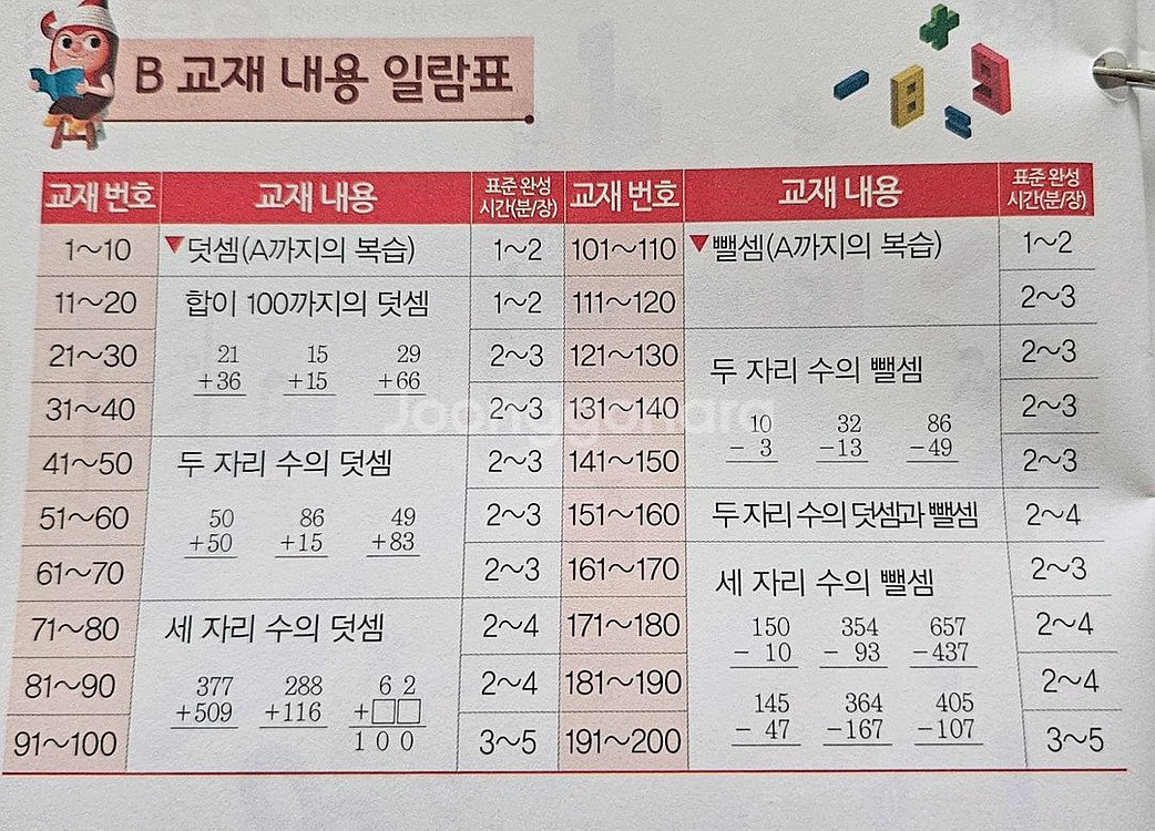 구몬연산 B단계 / C단계 B는 2세트 가능합니다. - B단계(초등 2학년 연산) - C단계 (초등 3학년 연산) -> C11~40번 없음 (구구단 2단~7단 건너뜀) 1세트 구매시 13000원 2세트 구매시 23000원 교재 내용은 첨부사진 참고해주세요. 일부 반복학습 교재도 포함되어있습니다. (답지×) 택배비 포함 가격 입니다. 평일 2시 이전 구매시 당일 발송 가능합니다.