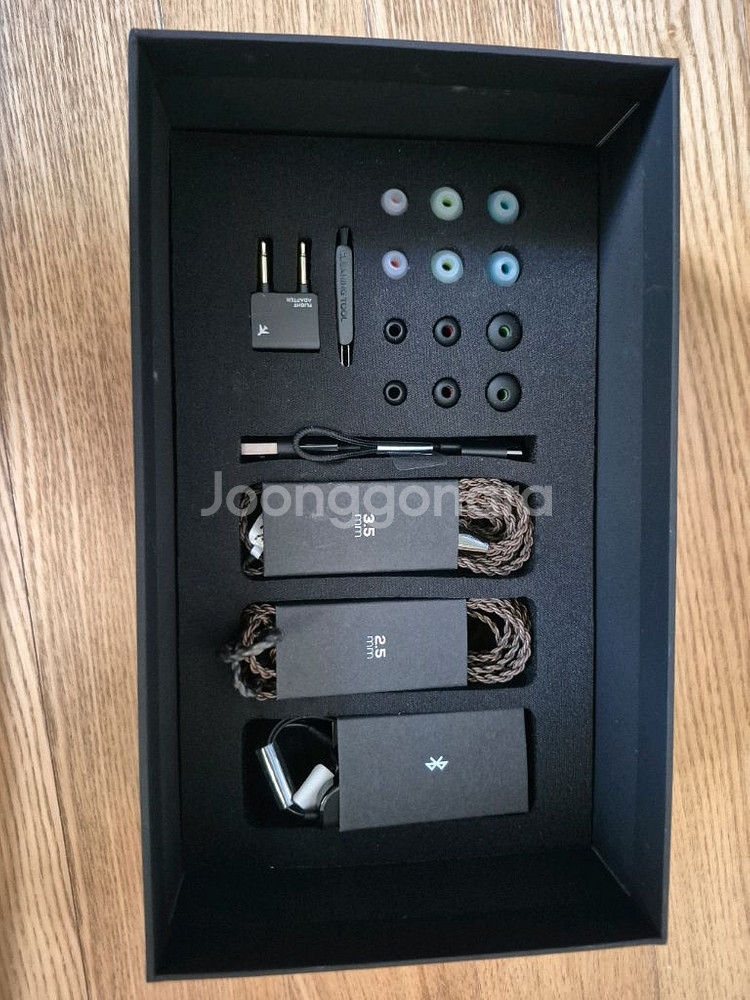 AKG N5005 이어폰 풀박스 판매합니다. 2.5mm, 3.5mm 케이블 모두 드립니다. 여분 이어팁도 전부 있어서 취향에 맞게 사용하시면 됩니다. 구성품 앵간하면 안건들였습니다. 2차구매자입니다. 영수증없어요. 미드하이부스트 필터 1개 망실했습니다. 대신 오공이 케이스하나 넣어드려요. 직거래대전 택+4