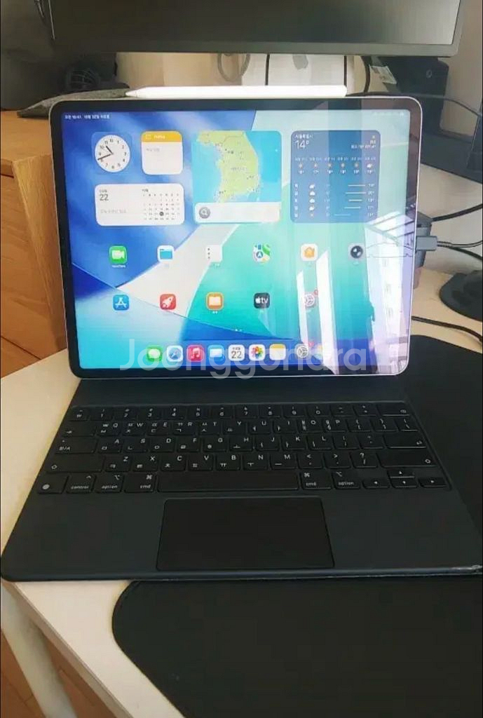 아이패드 프로 12.9인치 M2 128g 스그 + 매직 키보드 + 애플펜슬 함께 판매합니다 - 뛰어난 성능으로 전문가 수준의 작업도 가능합니다 - 얇고 가벼운 디자인으로 휴대성이 좋습니다 - iPad Pro 아이패드는 배터리90프로 상태좋습니다 ar필름으로 최근교체했구요, 매직키보드 중고구매라 사용감이 좀있습니다 박스는 없습니다. 직거래 110 김포에서 가능합니다.