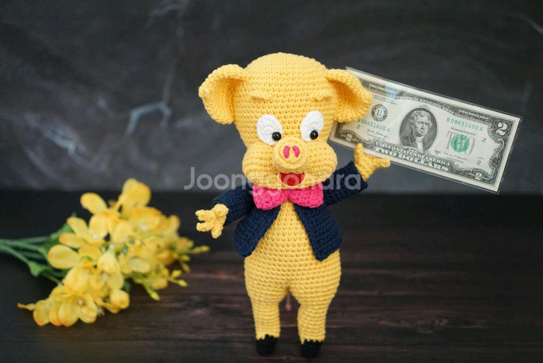행운을 가져다준다는 의미의 2달러 지폐를 들고 있는 꿀꿀이 인형입니다. 2달러 지폐는 실제 통용되는 신권입니다. 크기는 대략 27cm 정도 되고, 실도 저렴한 아크릴실이 아니라 면함유량이 높은 톡톡한 실로 만들었어요. 의미가 좋은만큼 개업선물, 명절선물, 생일선물 등 특별한 날의 특별한 선물로 추천드립니다. 인테리어 소품으로도 정말 좋을 것 같아요. 지폐없이 돼지만도 너무 예뻐요. 귀여운 손가락과 발가락, 꼬불꼬불 돼지꼬리까지 디테일이 귀엽지 않나요? 🤭 인형+2달러지폐 65,000원 PVC상자 (27*15*27) 별도 4,000원 일반택배 4,000원 (계좌거래⭕️ 안전결제❌️ 네고❌️) 🧶 구매 전, 채팅 연락 부탁드립니다. 🧶 주문은 선입금 후제작 입니다. 🧶 취소/반품/환불은 안되니 신중히 구매해주세요. 🧶 기간은 일주일정도 넉넉히 생각해주시고 여유있게 주문 부탁드릴께요^^