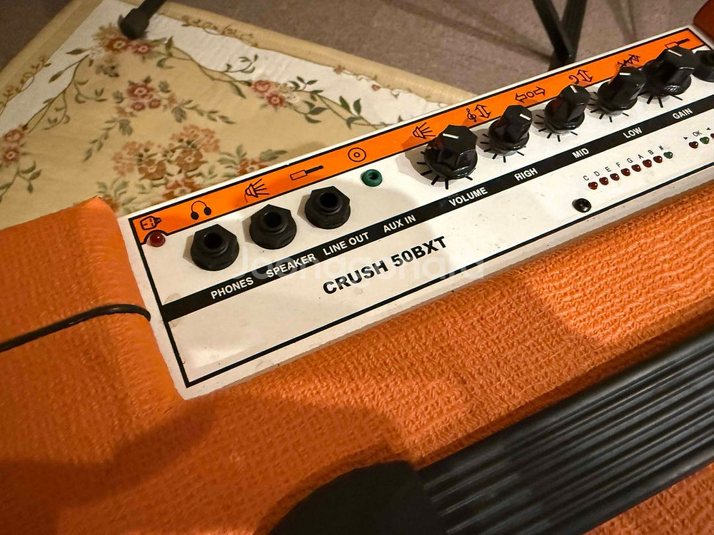 오렌지 CRUSH 50BXT 베이스 앰프입니다 - 50와트 출력 - 헤드폰, 스피커, 라인 아웃, AUX IN 단자 제공 다양한 톤을 만들 수 있어서 연주하기 좋습니다 합정역에 위치한 제 사무실에서 직거래 합니다.