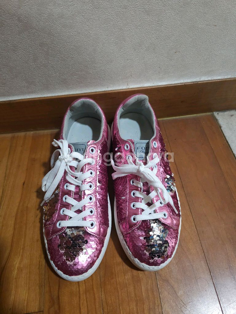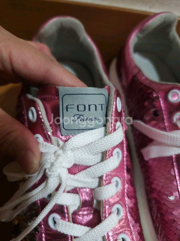 폰트 Firenze 스팽글 스니커즈입니다. 화려한 스팽글 장식이 포인트인 스니커즈로, 다양한 색상이 준비되어 있습니다. 데일리룩에 포인트를 더하기 좋은 아이템입니다. 판매상품은 핑크+실버 스팽글 사용감 거의 없습니다 굽3cm 178,000원