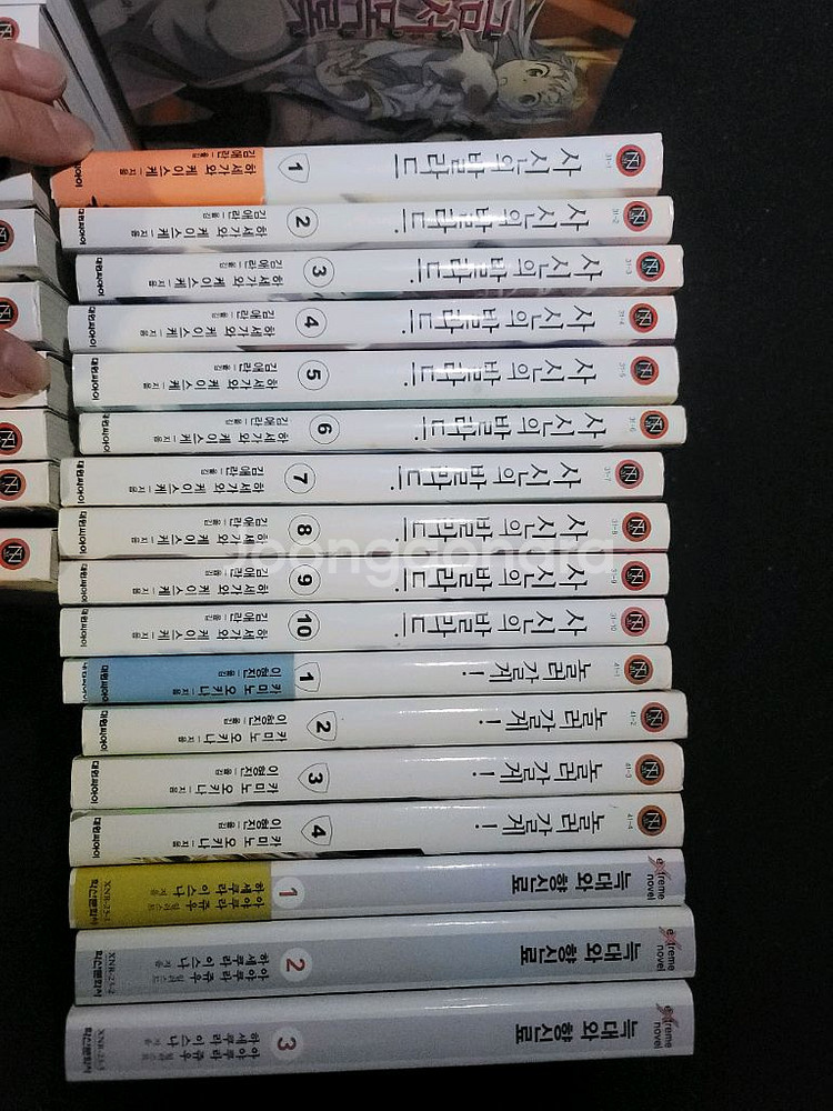 NT노벨(라이트 노벨) 일괄판매합니다. 사진에보이는 전제품입니다. 새제품은아니지만 상당히 깨끗하게 보관된 제품입니다. 어떤마술의금서목록 22권 어떤마술의금서목록ss 2권 신약어떤마술의금서목록 12권 사신의발라드 10권 놀러갈께 4권 늑대와 향신료 3권 총 53권
